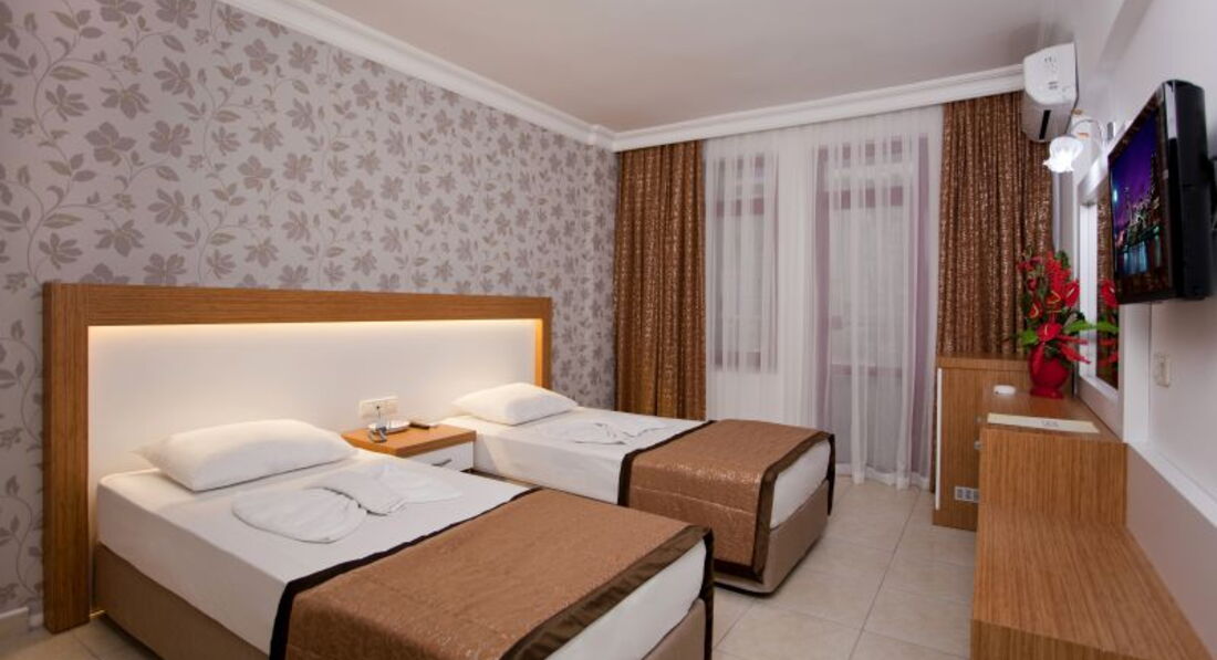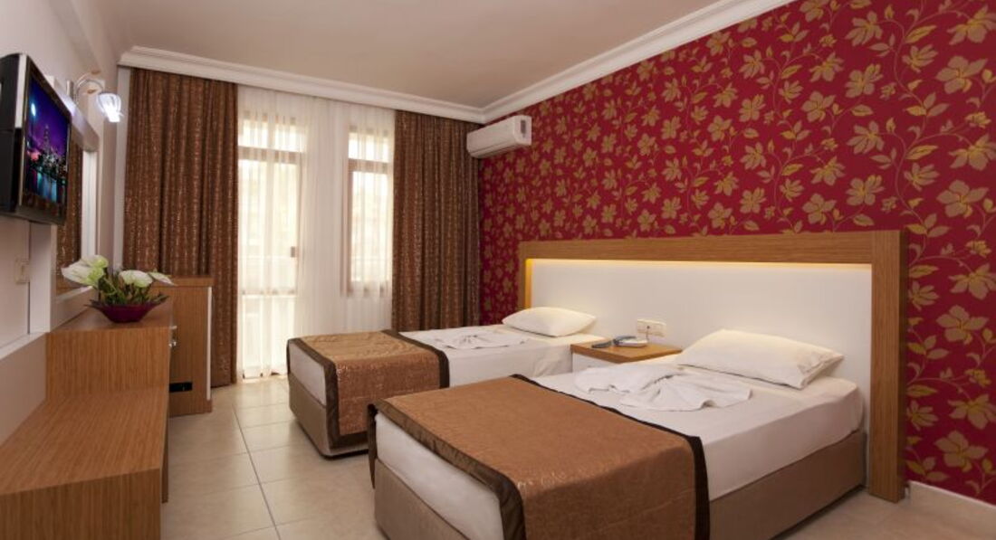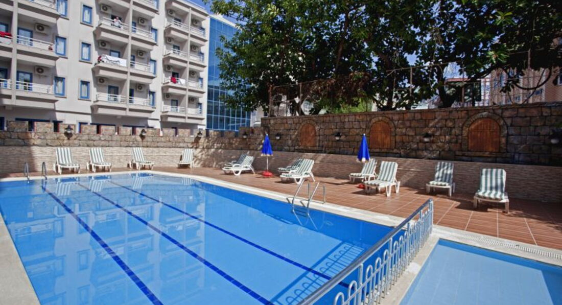 Отдыхала в этом отеле в январе 2015 г. В Турции больше 20 раз,есть с чем сравнивать! Данному рейтингу отель не соответствует!!!Месторасположение для зимнего отдыха Супер, центр города,рядом магазины,рестораны бары,бутики,клубы. Но для летнего отдыха я бы этот отель не выбрала! Далеко от моря...минут 10 пешком,очень маленькая территория,маленький ресторан,маленький бассейн,при полной загруженности отеля в ресторан и бар будут постоянные очереди. Питание ужасное,за 8 дней моего пребывание в этом отеле, на завтраки подавали только пережаренный картофель фри, который невозможно есть, и два вида колбасы, никаких блинчиков как пишут в предыдущем отзыве я не видела. Персонал по русски не говорит. Отношение к русским туристам скажем так "НИКАКОЕ"! Плюс этого отеля-номера! Хорошая новая мебель,ЖК телевизор,сантехника.