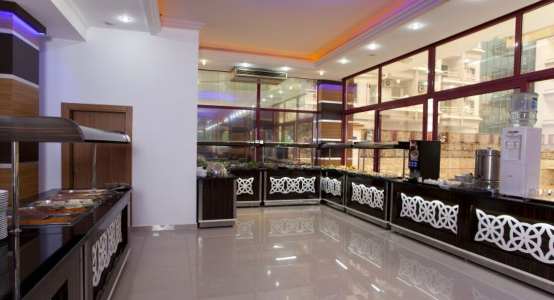 Персонал ужасный, хамы, русскоговорящий работник отеля (администратор) ужасно относился к русским, обзывал женщин. Адекватные только Азис и девушка на ресепшене, Еда вся однообразная, мясного ничего нет, алкоголь постоянно заканчивался по их словам и по долгу ничего не завозят. Постоянно живут в этом же отеле группа турок которые пристают к нашим девушкам, среди них есть один гей, провоцируют постоянно драки. На площадках плохо убирают - постоянного гора грязной посуды. До моря далеко, территория отеля очень-очень маленькая если это вообще можно назвать ее территорией, анимации нет. В общем очень скучный отель с хамским персоналом. Отель сам тянет от силы на 2 звезды с минусом, самый худший из худших отелей. Никому не рекомендую ездить в этот отель, получите лишь одни негативные эмоции. Отпуск был испорчен!!!
