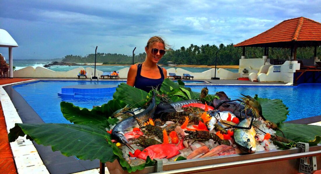 Перед поездкой основательно сидела в интернете, искала отзывы. Теперь пишу свой, вам может тоже пригодится. Летели Одесса - Шарджа 4,5 часа потом полтора часа стыковка и Шарджа-Коломбо 4,2 часа. И 6 часов до отеля. Очень утомительно. Но... Когда приехали ( и здесь я буду уже банальна) просто обалдели от красоты. Отель в местном стиле, прикольные номера с высоченной кроватью с палантином и океан и пальмы из рекламы баунти. Бассейн с морской водой, гидромассажная ванна на верхней террасе. Завтраки - ужины над морем, когда волны бьются о камни... Сезон на южном побережье ноябрь- апрель. Мы приехали 2 ноября и застали один сильный дождь вечером- ночью. За 13 дней волны стали меньше, в океане все купались, но надо быть настороже. Мелкие травмы получали многие. В океане даже небольшая волна сбивает с ног. Вопрос обедов ( брали завтраки и ужины) благодаря интернету решился просто. Правое по берегу кафе , если к океану спиной. Там легендарный уже Пьер. Отличная морская еда. Все свежайшее ( ночью еще плавало). И не острое. Омары, крабы, креветки, дорадо. К каждому второму блюду подают рис, салат и картошку бесплатно. И фрукты в конце обеда. Цены на гривны посто смешные. Изголодавшись с дороги мы заказали два супа с крабами и тарелку ассорти морепродуктов, где было все вышеперечисленное. И три бутылки пива. Учитывая принесенные ( для нас неожиданно) рис, картошку, салат... Думали не встанем. Так вот на гривны это стоило 280. Экскурсии тоже брали у Пьера. Здесь принцип- чем больше человек, тем дешевле. Но мы ездили вдвоем с мужем. Как то не подобралось еще пара тогда. 50$ стоила поездка в Галле. По дороге мы посетили самый южный в Азии маяк, черепашью ферму маленькую ( на нее входной билет отдельно оплачиваешь, кажется 3$), чайную плантацию, сад специй и магазин их камней. Все очень интересно. Попросили Пьера остановиться у супермаркета и купили их хваленый красный ром. Действительно хороший. Ездили в национальный парк Ялла и на водопад. Стоило 220$. Люди, которые набрали 8 человек заплатили 90& на пару, но без водопада. Парк, вернее саванна интересная. Много живности. Но не увидели леопардов. Проводников это очень расстроило. Еще ездили на тук- туке с Пьером на остров неподалеку поплавать с ластами- масками и заехали на морской фонтан, классное зрелище, стоит посмотреть. За эту поездку вообще не хотел брать деньги, но мы всучили 20$. Справедливости ради напишу, что в кафе слева тот же самый сервис и меню. Правда нам еще каждый день к выходу на пляж приносили по кокосу и к отъезду приготовили 5 кг фруктов в презент. А вот те, кто не стал пользоваться местными, попали в неприятную ситуацию. Есть такие РОМА и КРИСТИНА. Пишу большими буквами, чтобы вы за помнили этих аферистов. Их порекомендовали женщине с сыном тур агентство в Киеве. Наши, украинцы...Собрали на экскурсию в Галле по 100 $ с 10 человек и пропали. Люди три дня им звонили, они обещали то через час, то на следующий день,но никто не приезжал, то не брали трубку. Отель, тур оператор киевский все отморозились. И только когда стали требовать полицию - на следующий день в 3 дня ( самая жара) им позвонили и сказали выходить на экскурсию. Но несколько человек уже уехали не получив своих денег обратно. Так что опасайтесь соотечественников! Завтраки- ужины нормальные. Ужины когда лучше- когда хуже, но голодными не остаетесь точно. Потрясающие по вкусу 