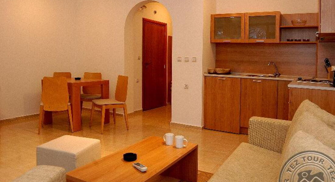 • Оne bedroom apartment - спальня з двоспальним ліжком та вітальня з розсувним диваном, з окремими входами з передпокою, обладнаний кухонний блок (холодильник, духовка або мікрохвильова піч, плита, витяжка, тостер, чайник, кавоварка, посуд: сковороди, каструлі чашки), ванна кімната з душем, макс 4 чол., 55 м2
