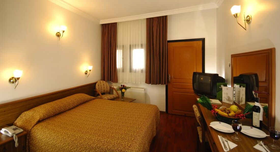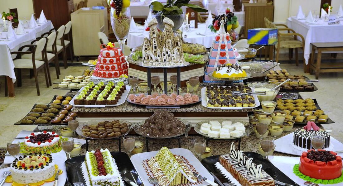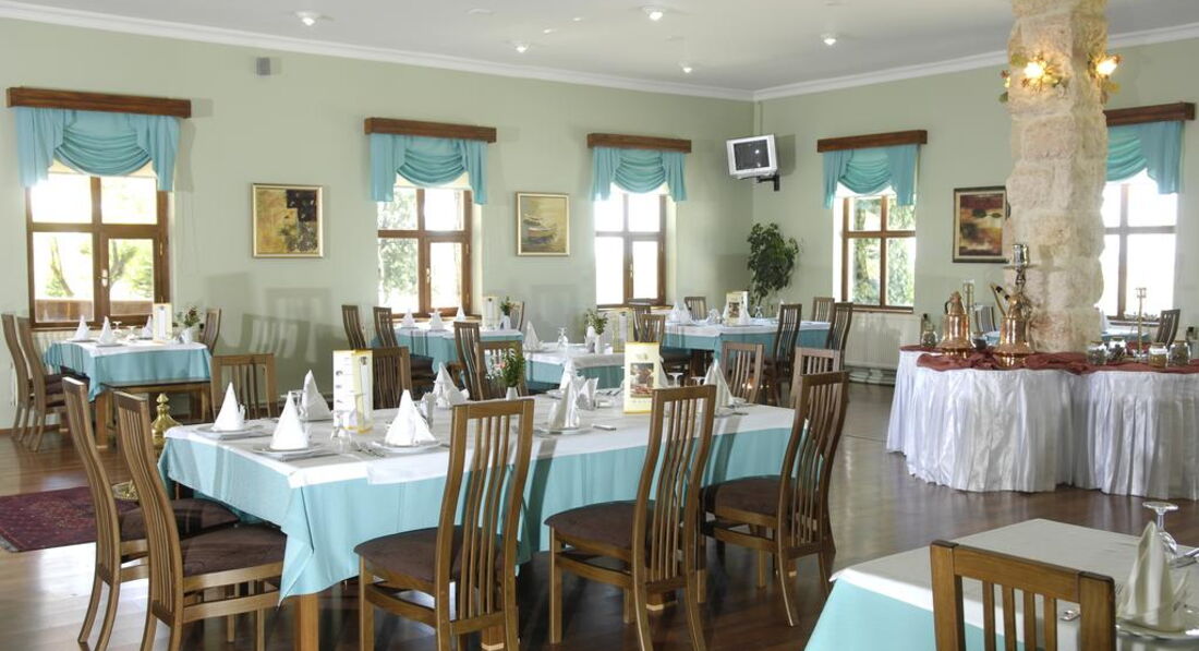 • головний ресторан Sari & Yesil пропонує вибрати своїм гостям улюблену страву з меню на обід та вечерю. Також на вибір є різні сорти вина з Каппадокії та імпортні марки.