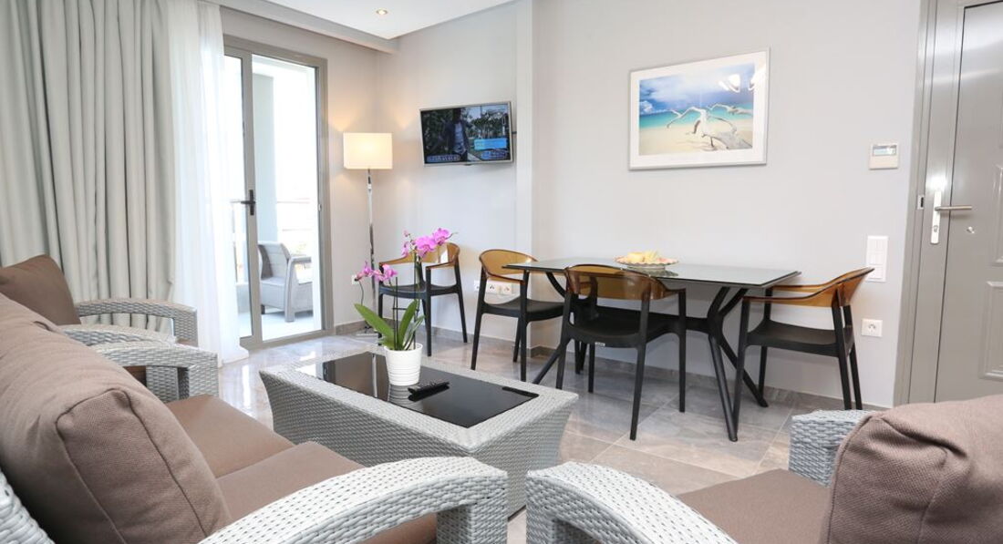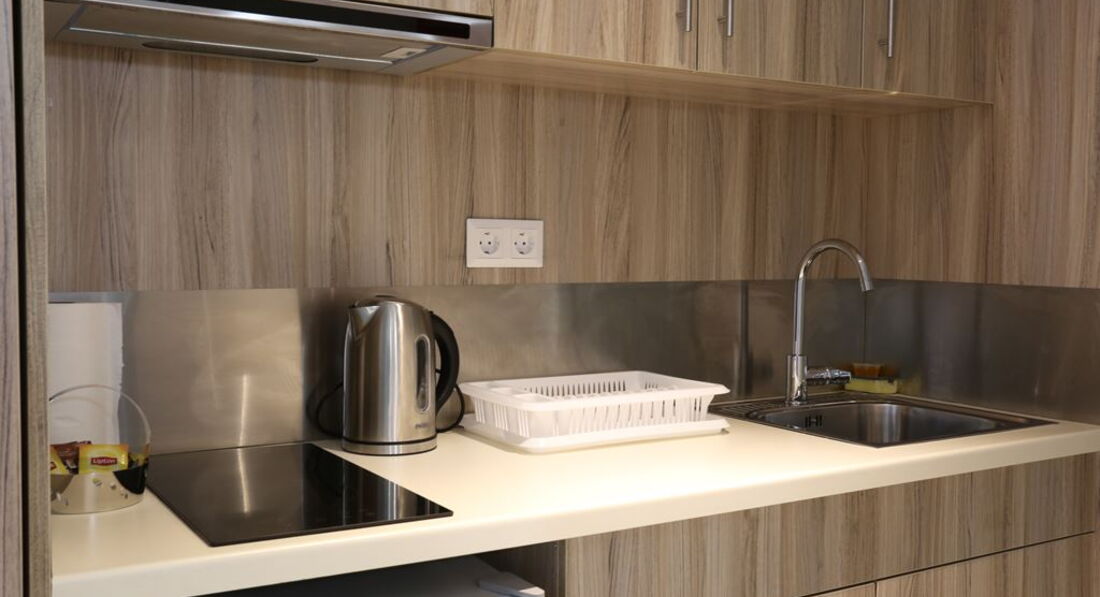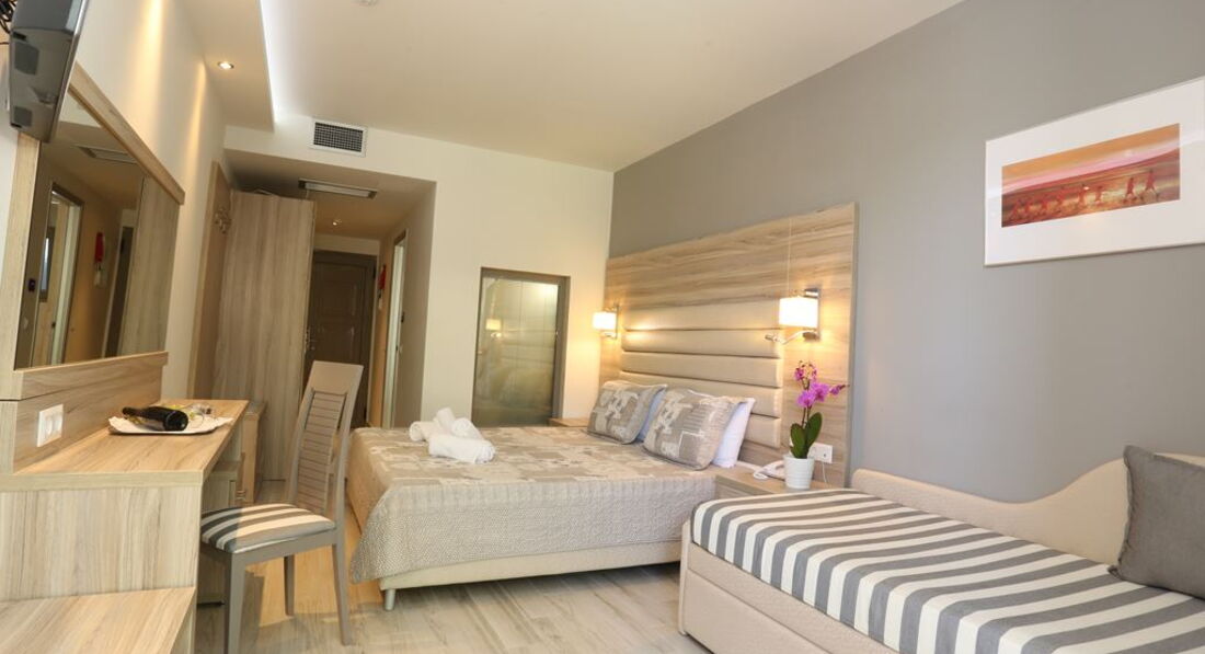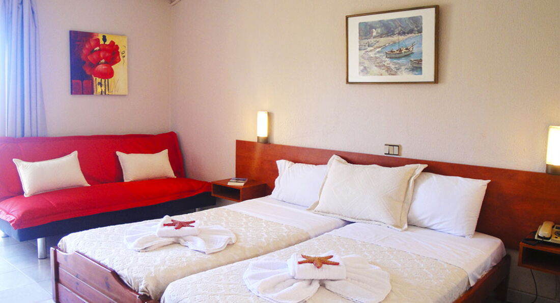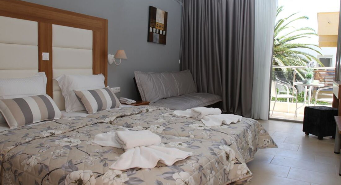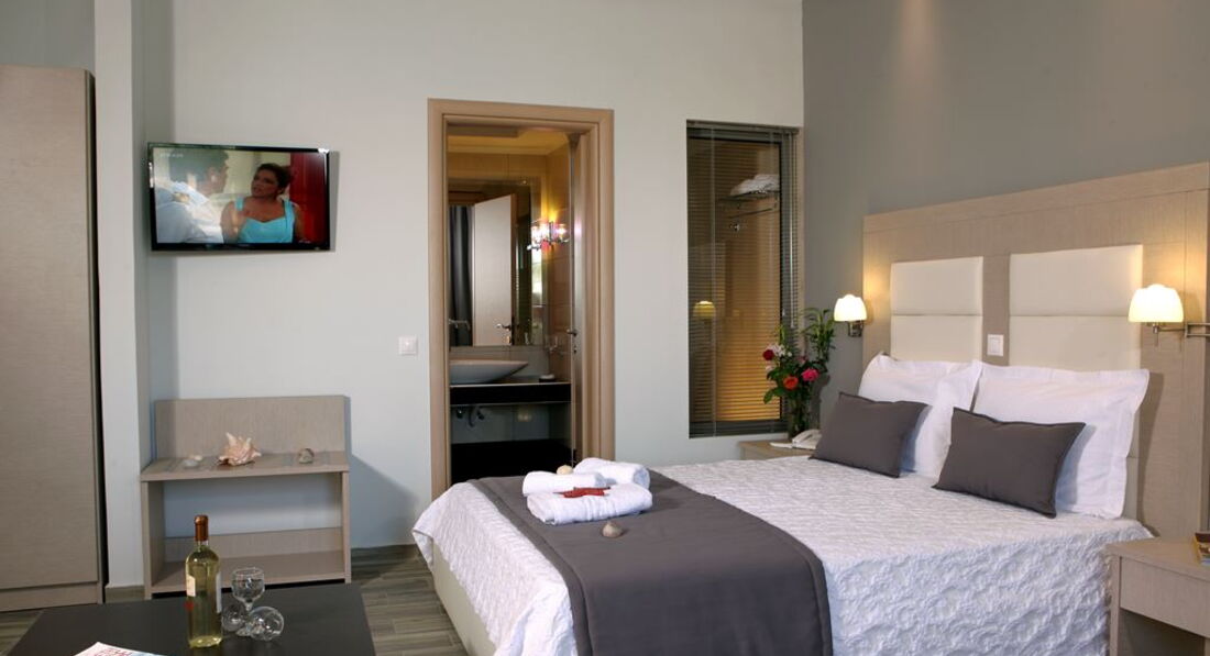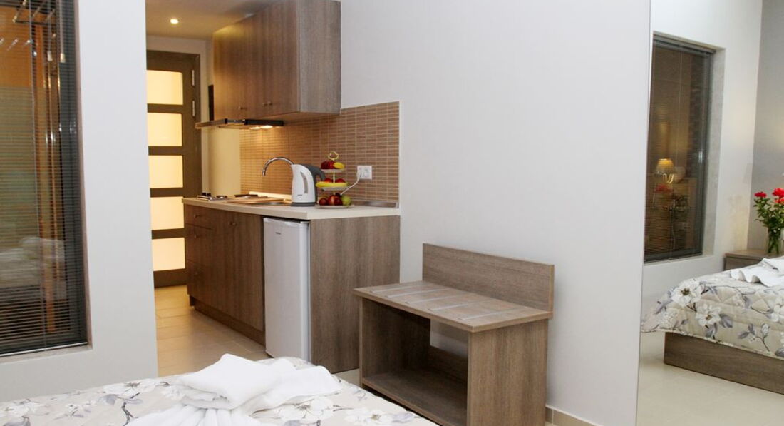 Всього 114 номерів: Double Rooms (~21 кв.м), Deluxe Studios (~34 кв.м), Deluxe Studios 4 pax (~34 кв.м). Типи номерів: 35 Double Rooms (~21 кв.м) Deluxe Studio Нові просторі студіо, вишуканий дизайн, повністю обладнана кухня, двоспальне ліжко та двоспальний диван-ліжко, телевізор Плазма (32''), ванна кімната (загальний вхід до раковини, зліва душова з дверима, праворуч WC з окремими дверима). Deluxe Studios 4 pax Нові просторі студіо, вишуканий дизайн, повністю обладнана кухня, двоспальне ліжко, двоспальний диван-ліжко та крісло-ліжко для 4-ї людини, телевізор Плазма (32''), ванна кімната (загальний вхід до раковини, зліва душова з дверима, праворуч WC з окремими дверима). Тип додаткового ліжка – розкладне.У номері: Балкон/тераса Душ Кондиціонер у липні та серпні - безкоштовно Кухня – обладнана Російський канал Супутникове ТВ ТБ Телефон Фен Холодильник