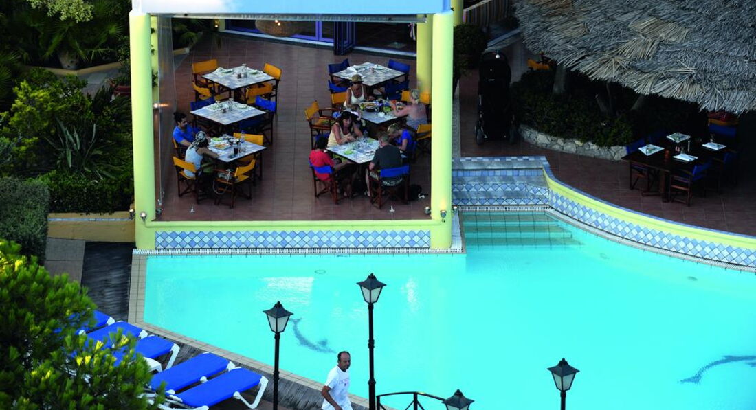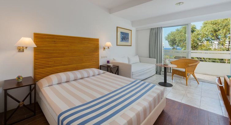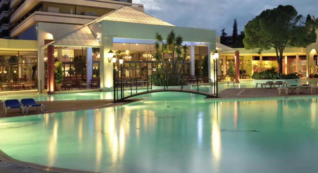 Територія та послуги: снек-бар хімчистка (платно) кімната для багажу конференц-зали: 1 (до 200 осіб) ресторани: 1 ресторани a la carte: 2 (грецька та середземноморська кухня) пральня (платно) лікар за викликом (платно) послуги портьє паркування є басейни: 2 (відкриті: 1 з морською водою, 1- з прісною) Wi-Fi безкоштовно ТБ-зал обмін валюти магазини (мінімаркет, сувенірний) біля басейну парасольки, шезлонги: безкоштовно (пляжні рушники не надаються) Розваги та спорт: міні-гольф безкоштовно більярд платно оренда велосипедів платно електронні ігри платно водні види спорту платно (не належить готелю) тематичні вечірки безкоштовно настільний теніс безкоштовно міні-футбол безкоштовно тенісний корт безкоштовно (з твердим покриттям) Для дітей: дитячий майданчик (огороджено, покриття – пісок) дитячий басейн: з морською водою послуги няні: за запитом, платно дитяче ліжечко: за запитом, безкоштовно (манеж) дитячий візок: за запитом, платно дитячі стільці в ресторані: є Живлення: BB HB Пляж: гальковий (250 м від готелю, через дорогу з активним рухом) вхід у море: галька (дрібна та велика) на пляжі парасольки, шезлонги: платно рекомендується спеціальне взуття відкрита берегова смуга До оплати приймаються кредитні картки: Visa, MasterCard, Maestro.