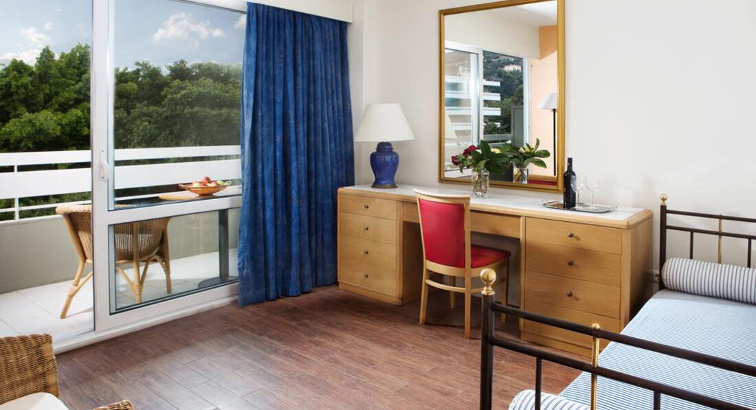 Типи номерів: standard room (осн. ліжко – двоспальне, дод. – софа або розкладне, макс. 3 чол., 23 м2).У номері: сейф: в номері, платно зміна білизни: 3 рази на тиждень кондиціонер: центральний (з індивідуальним контролем, безкоштовно) room service: є банні приналежності ванна зміна рушників: щодня телефон підлога: керамічна плитка прибирання номера: щоденно фен: є балкон ТБ: супутникове Інтернет: Wi-Fi, безкоштовно халат міні холодильник
