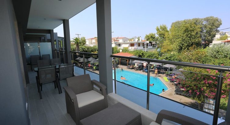 Dionysos, невеликий економічний тризірковий готель входить до комплексу "Dionysos Hotel Apartments", оточений прекрасним садом на 5 акрах землі. Готель розташований в одному з найпопулярніших курортних містечок півострова, де безліч клубів, ресторанів, барів, магазинчиків, чудовий піщаний пляж та гарний парк. Кожен знайде тут розвагу на свій смак. Поєднання сучасного комфорту та гостинність, гарантують, що Ви насолоджуватиметеся безтурботними канікулами.