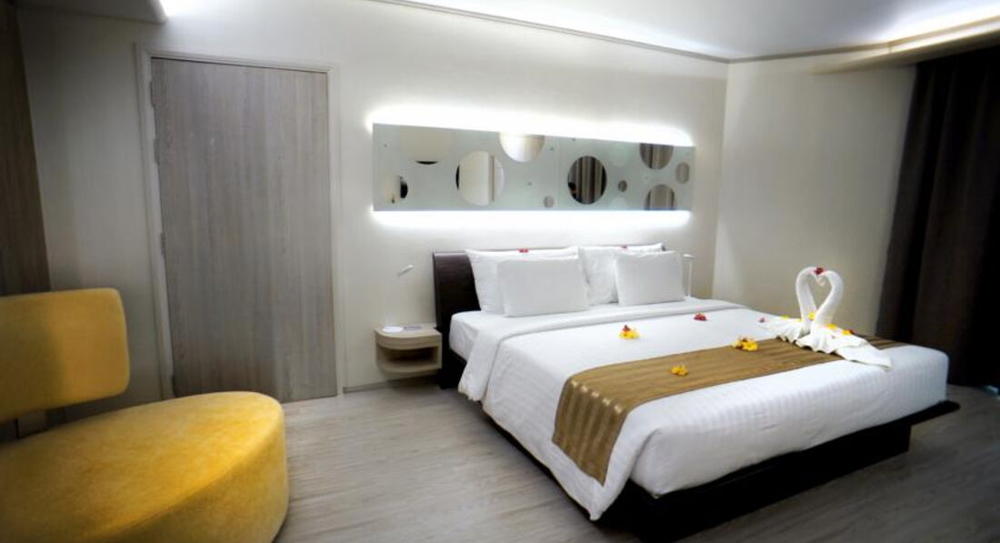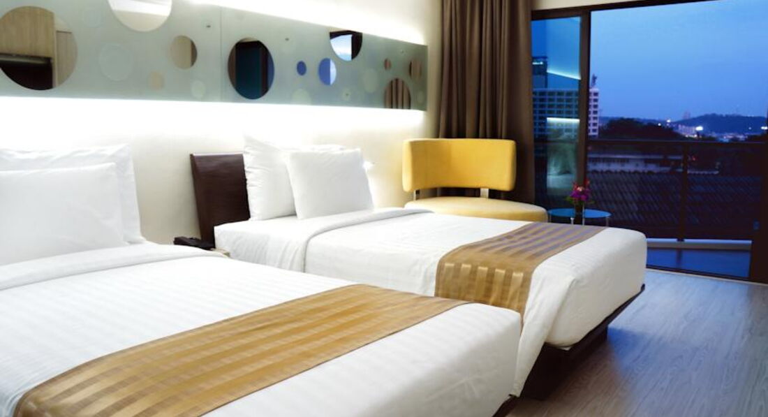 были в данном отеле в 2015 году. долго выбирали и наконец решили остановится на данном отел и не прогадали. мы отдыхали в новой башне, которая носит название ШИК. кстати полностью соответствует своему названию. теперь подробнее. заселили в течении 15 минут правда попросили депозит в размере 1000 бат, который в конце полностью вернули. номер был на на 7 этаже. особенно понравился ремонт, все новое, ничего нигде не скрипело, не отваливалось. кровать огромная, ночью долго не мог найти жену. кровать правда огромна. уборка кстати так себе, но постель меняли регулярно. завтраки норм, мне правда не понравилось, но жена смогла чтото поесть . мне главное с утра чай а он был. персонал в принципе отзывчивый. единственное недоразумение это наличие под окнами мини волкингстрит. музыка гремела дай боже, но изоляция отличная, закрываешь балкон и все . зато можно по фотографировать типа девушек в процессе приготовления к вечерней программе. теперь про инфраструктуру.. в принципе она очень развита. прямо под отелем есть неплохое кафе с европейской кухней, готовят очень даже не плохо. правда официантка немного странная. до пляжа ровно 50 метров, через дорогу. море грязное конечно, но оно и понятно это порт, очень много лодок, так что ощущение того что купаешься в солярке. поэтому больше были в бассейне. до волкин стрит 20 минут ходьбы, на туттуке 20 бат. 5 минут езды. рядом очень много всяких магазинов особенно на второй улице, можно пошопиться, особенно в части косметики. был небольшой рынок но потом прикрылся. неподалеку есть отель можно подняться на 25 этаж, купить напиток и фотографироваться с 25 этажа, в бассейне вход бесплатный, зашли вечером даже напитки не покупали. вид шикарный, называется сиамсиам. . в общем и челом поехать можно. единственный минус море не очень чистое. а так прерасно