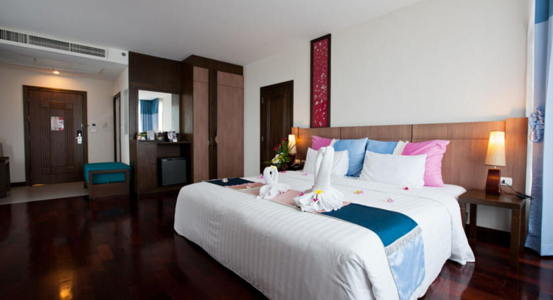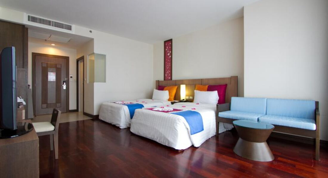 Я ездила в Тай одна с 3-х летним ребенком. Отель в целом очень хороший! Заселили сразу без каких-либо проблем, в данном отеле существует депозит-100$. Нас разместили в 4-х этажном здании на 3 этаже, номер обалденный есть все самое необходимое, единственное, напрягло отсутствие утюга, и как я не пыталась объяснить персоналу, что мне нужно погладить вещи это удалось только на четвертый день пребывания, хотя людям знающим английский думаю это сделать было бы проще. Вид с балкона номера шикарный:бассейн и море. Что касается бассейна, очень клевый, ребенок не хотел уходить оттуда из-за наличия водных горок. Питание: у нас были только завтраки, разнообразию нет предела, и вегетарианцев тоже порадует кухня. Обслуживание вполне хорошее, персонал приветливый, ну и конечно как принято в Таиланде все улыбаааааются. В общем рекомендую, я и сын были в восторге.