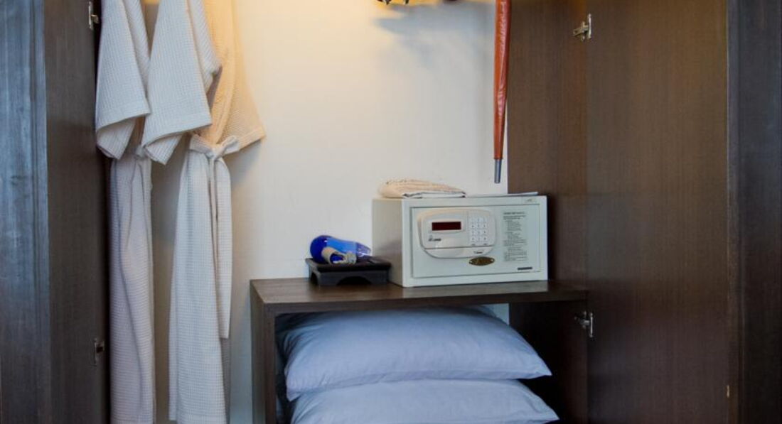 В номере есть сейф ! холодильник. Санузел с ванной и душем. В шкафу были халаты :-) Вода бесплатно каждый день в размере 2 бутылок по 0,5. Убирали каждый день, чаевых не оставляли.