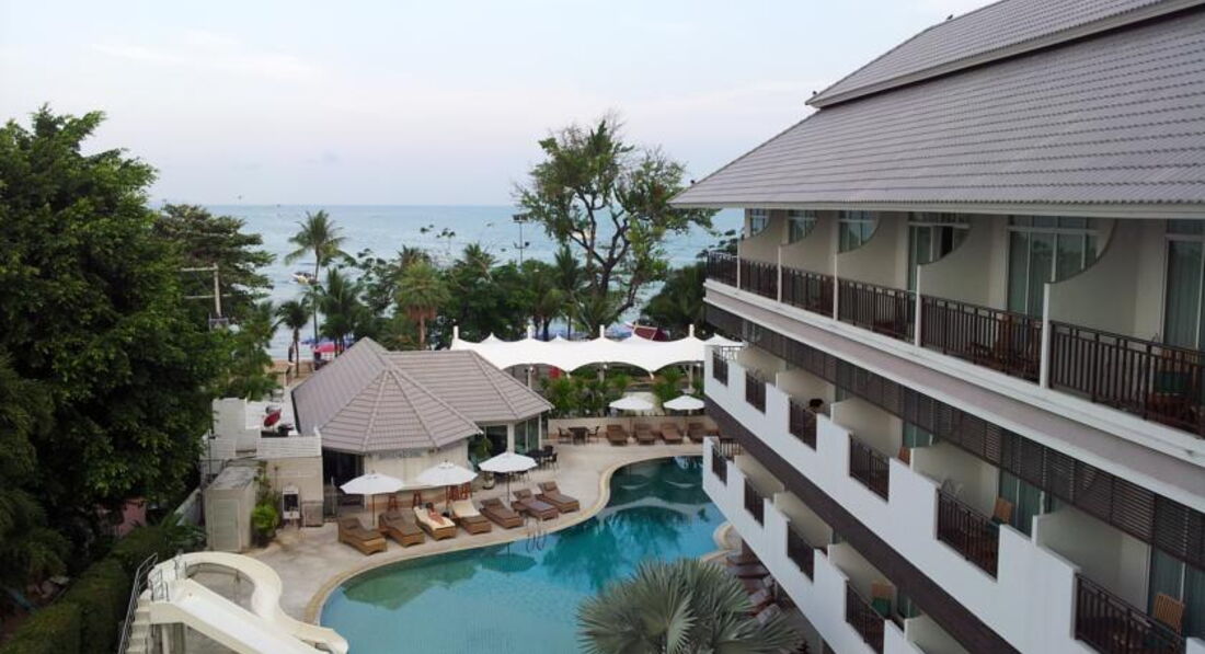 Отель городского типа. Территория небольшая, но вполне уютная. Море через дорогу. Завтраки были вкусные, но недостаточно разнообразные. Приветливый персонал. У нас был большой 2-х комнатный номер, с ванной и душем. Из номера было видно море. От отеля недалеко находится большой торговый центр, где можно поужинать. Также можно минут за 20 дойти до Walking Street (главная прогулочная улица с развлечениями). Рекомендую отель для посещения.
