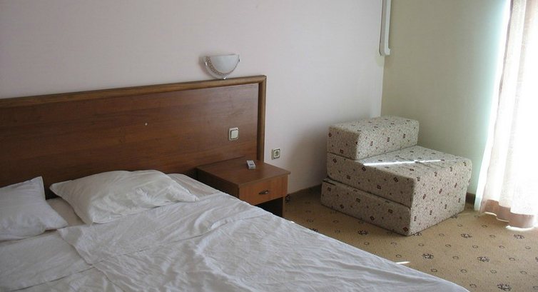 В прошлом году мы с мужем также отдыхали в Болгарии, поэтому были неприятно удивлены тем сервисом и отношением к гостям отеля с которым мы столкнулись. Номер выглядит скромно: старый маленький телевизор к которому невозможно подключить DVD. В номере стоят две пластмассовые табуретки и поломанный стул. Уборка номера осуществлялась ежедневно, но сток ванны был забит и принимать душ приходилось, стоя по щиколотку в грязной воде. Смены постельного белья добилась только на седьмой день.