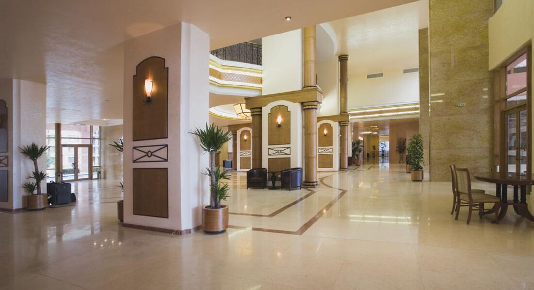 Дорога: в среднем занимает минут 30-40, будет зависеть от количества отелей, по которым развозят туристов перед вами. Мы были самые последние, и уныло разглядывали отельчики, по которым развозили "содержимое автобуса". Ибо смотреть было вообще не на что, я подумала, неужели и наш оказался красивым лишь на фото в интернете? Но нет :) когда мы подъехали, сразу стало понятно, что отель - что отель отличный))) Прекрасный холл и лобби. Всё в мраморе, большущие площади.