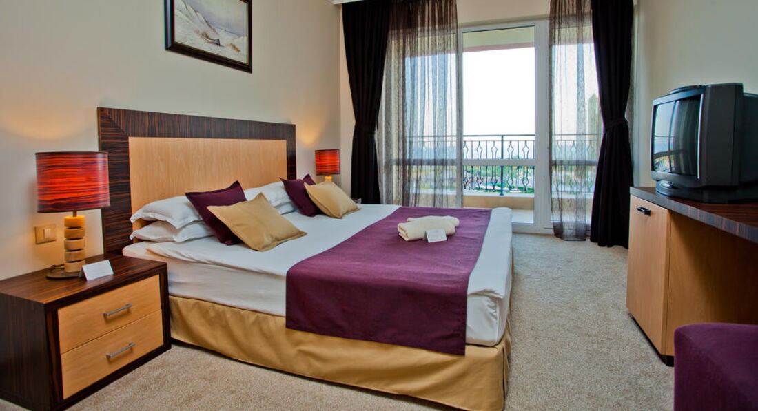 Всем привет! Сейчас находимся в этом отеле, уезжаем через пару дней. Приехали в Болгарию я с женой и 9-ти месячный сын. Про отель много написано положительного и у него очень высокий рейтинг. Считаю, что рейтинг его завышен. Все-таки это отель 4-х звездочный, и он соответствует им, но до 5-ти звёзд не дотягивает. А рейтинг как у крутой пятёрки. Расскажу про минусы (про плюсы и так много сказано). Бронировали мы номер стандартный с видом на моря. Такой и получили. Разместив в номере детскую кроватку, места в номере стало совсем немного. Есть в номере холодильник, но минибара в нем нет. Холодильник пустой. Из крана полностью открытого на горячую воду приходится ждать этой горячей воды. Часто сначала секунд 30 сливается холодная. В отеле негде пообедать даже за деньги. Только шаурму можно купить на обед за 400 рублей и все. Рестораны в обед не работают. Завтраки в отеле все дни нашего проживания были абсолютно одинаковые, не отличались абсолютно ничем. А на ужин, например, даже за деньги нельзя заказать ни чай ни кофе. Их просто нет. Они только на завтрак. Два бокала вина, которые могут принести на ужин бесплатно, вкуса очень скверного. Теперь про температуру в море. Море очень холодное. Температура около 19. В бассейнах вода немного теплее около 22, но все равно прохладно. В результате в море почти никто не купается. Считаю, что на Чёрное море нужно ехать только с середины июля, когда море прогреется. Несколько дней были дожди и пасмурная погода. В принципе, вот и все, что хотел сказать. Повторюсь, отель не плохой, но не великолепный.