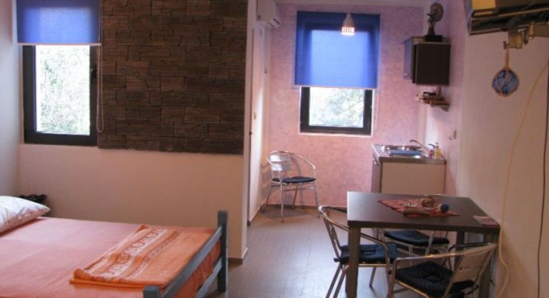 Двоповерховий будинок, затишний двір, тераса. Для розміщення пропонуються - 2 двомісні студії . Лежаки, більярдний стіл, пральна машина надаються безкоштовно.
