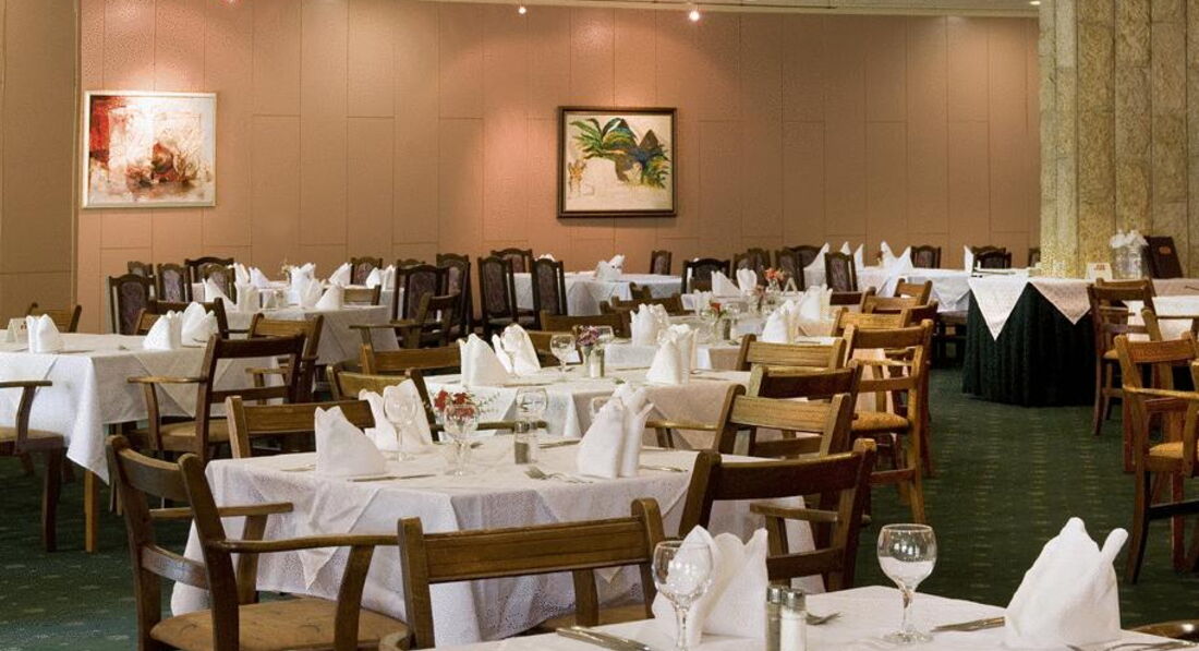 • ресторани: 2 (основний ресторан (на 350 осіб); панорамний ресторан «Синє небо» (на 120 осіб))