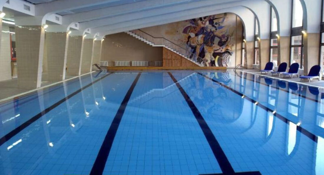 + самый большой и замечательный плюс который подсластил горькую пилюлю отеля - это чудесный спортивный бассейн с минеральной водой!!! Там занимаются спортивные отряды детей и часто несколько дорожек заняты, но хоть одна всегда свободна для отдыхающих. После бессонной ночи в духоте - бежали к 7 утра - открытию бассейна в пустом плавали- чудо - доспим на пляже!!
