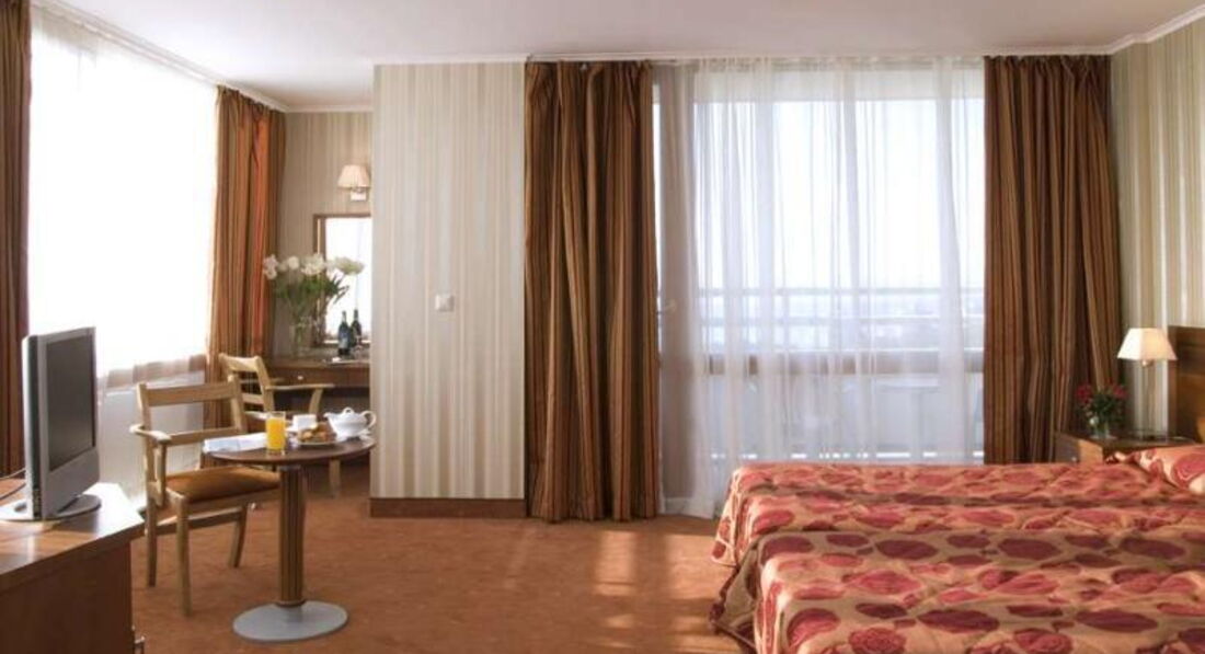 Отель нам очень понравился, своей монументальностью, советским духом, надо же как шикарно строили для партийных работников. Санаторий класса люкс, по тем временам туда ездила только элита, а у нас теперь есть возможность у простых людей увидеть этот шик, где даже перила из мрамора, 6 лифтов, 17 этажей, на крыше ресторан, внизу два огромных бассейна крытый и закрытый (что очень удобно в жару, нигде такого нет), внутри большой спа центр с бильярдной и фитнес залом, а самое главное большая отрытая территория вокруг здания и здание видно за 30 км, куда бы на машине не поехал, в Варну или в Бальчик, отель как маяк, да и еще прямо там берешь машину напрокат, что опять таки очень удобно, до пляжа недалеко 5 минут , даже лучше что отель не прямо на пляже(не мешает никто с пляжной жизнью). Рекомендуем.
