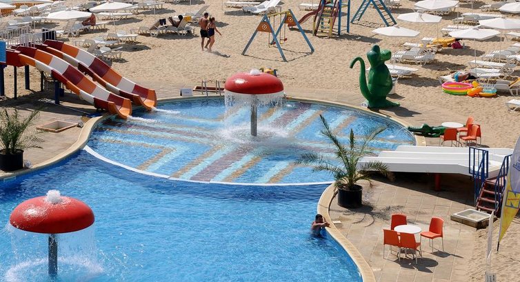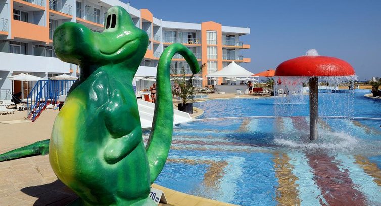 Итак, выбирала болгарию, так как отдыхала с детьми , возраст 4,5 и 1,9.. Действительно отель именно для отдыха с детками, песок, хороший вход в море, все включено, про питание скажу так.. Много варено-тушеного, детки кушали), есть супы и каши, что очень радует, так есть с чем сравнить... Есть детская площадка, батуты, водные горки и конечно бассейны... Именно для деток, не глубокие.. Для взрослых конечно бассейн не очень большой и не глубокий, или просто народу много).. Вобщем мы купались в море)) есть вечерняя анимация, но мои маленькие). Теперь конкретно по отелю.. Ну на картинке конечно красивее)... Номер хороший, просторный как и обещали))), убирают достойно, учитывая, что песок везде и все его несут на себе в отель((( вид из номера- минус... Конечно на картинке отеля не показаны заброшенный разбитый пирс, не обустроенная территория с камнями и торчащие из земли трубы.... Но в ту сторону мы не смотрели)))) любовались видом на море))) еще к минусам отнесла бы и небольшой пляж в сравнении с количеством народа... Территория общая у 4 отелей, поэтому народу тьма.. И как обычно лежаки заняты полотенцами с 5 утра))) но это претензии не к отелю, а к отдыхающим соотечественникам)... Вобщем если у вас детки, приезжайте)