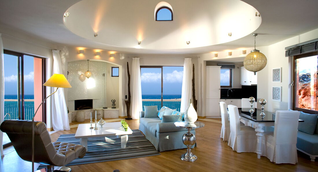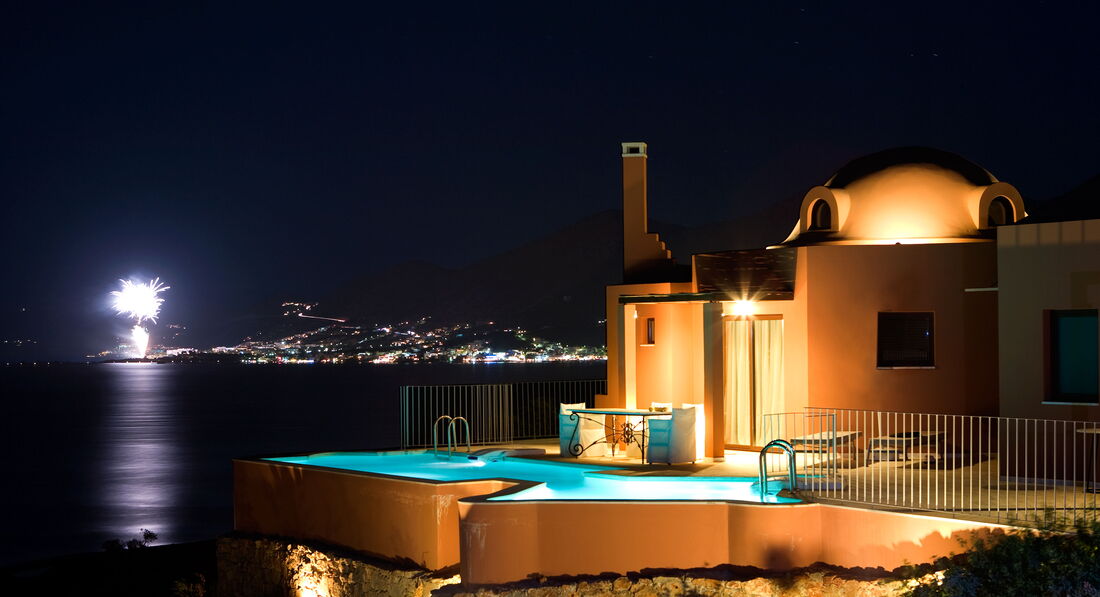 Престижний готель розташований у відокремленому місці, з видом на острів Спіналонга. Справжня середземноморська архітектура, м'які тони інтер'єрів, вишукані меблі ручної роботи – все це гармонує з довкіллям. Різноманітний номерний фонд від двокімнатних сьютів до розкішних резиденцій з індивідуальним басейном. Рекомендуємо як для респектабельного сімейного відпочинку, так і для відпочинку романтичних пар. Є можливість проведення весільних церемоній (символічні, офіційні церемонії з виїздом Мера, вінчання у каплиці на території комплексу). За 3,5 км від готелю знаходиться Елунда, туристичне селище славиться своїми рибними тавернами зі свіжими морепродуктами, а за 1,5 км – історичне містечко Плака.