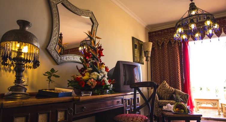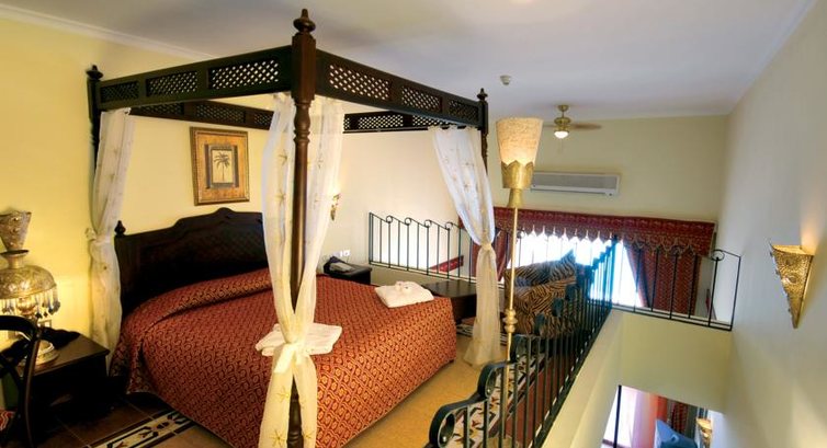 Номера как и большинстве отелей Египта не блещут новизной. Как и везде мебель старенькая, телевизор старенький (4 русских канала) и т.д. Но если не привередничать слишком, то сам номер надо признаться был довольно не плохим. Duplex это двухэтажные номера на втором этаже корпуса. На первом этаже диван, два кресла, круглый стол душевая и туалет. Телевизор и холодильник тоже на первом этаже. Так что кто любит посмотреть телевизор лежа в постели, то это не ваше. Захотите ночью попить, так надо спуститься в низ. На втором этаже ещё одна ванная комната с джакузи, туалет и большая кровать с балдахином. сейф находится на втором этаже. С начала отдыха мы обрадовались такому огромному номеру, но под конец ощущали определенный дискомфорт бегая вверх вниз вспоминая в какой шкаф повесили вещи, но это наша личная несобранность.