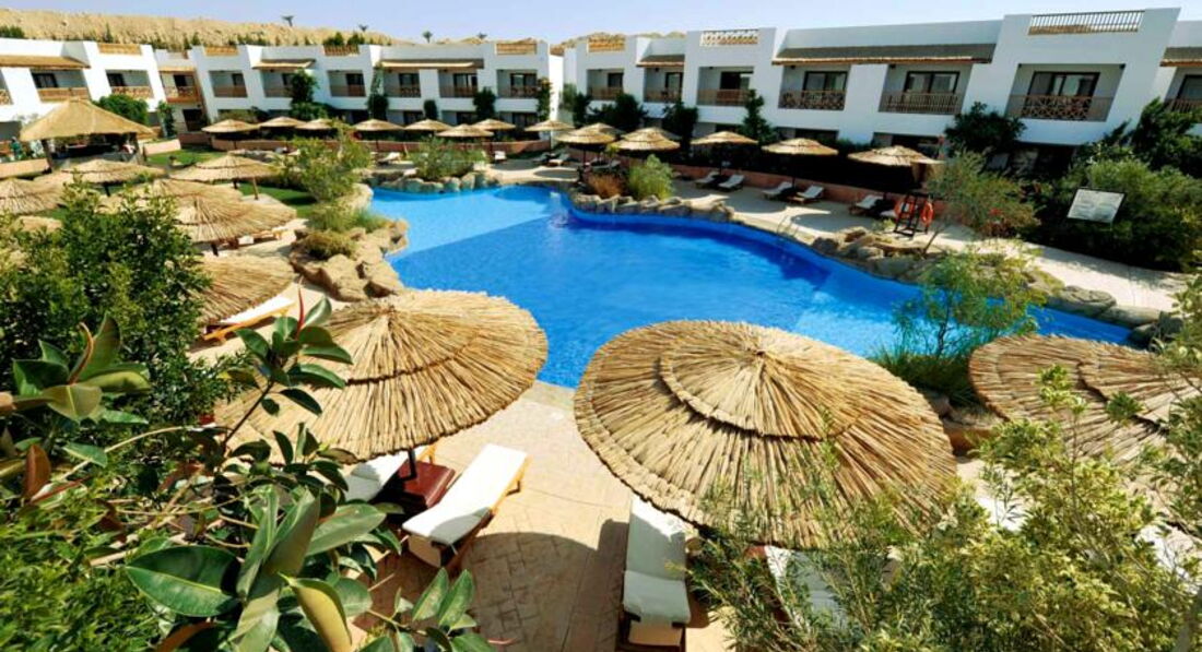 Отель хороший, но за территорией грязь и пустыня....и один супермаркет рядом. все! если вы хотите цивилизации, магазинчиков,телеграфа рядом - то вам надо в наама бей.....нас не напрягало мы ездили на маршрутке (2 бакса с 3-4 человек) туда погулять, посидеть в кафешках, за сувенирами...Отель хороший, вкусно кормят, вокруг тишина, только в отеле музон играет (но тихо). пишут анимации нет - есть она, и теннис большой и маленький, и дартс, водное поло, гимнастика-аэробика, амфитеатр со сценой, диско! что еще надо? пишут что там 5 бассейнов....приехали, и весь отдых считали....реальных -3 бассейна....просто люди наверно считают бассейнами детские кружочки, которые приделаны к основному бассейну..чушь......И то, один из них для арабских женщин, которые там купаются...бассейн находится около их корпусов (вдали), получается для русских только 2 бассейна!(которые в центре отеля) и что удивило - платные горки! опупеть......нигде такого не видели!алкоголь нормальный! напивались все! наливают как себе - побольше ))уже мутит от виски кола и джин спрайт! выпечка у них просто супер! очень вкусная! клубника тоже вкусная 1 кг- 1 бакс...погода хорошая была. ветров моло было. Отдыхали в конце февраля... Собирайте чемоданы и бегом в египет!!!!! море там супер! (до моря 10 минут) удачи и приятного отдыха!