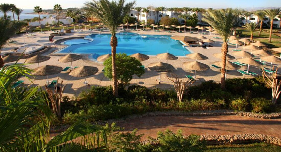 Огромная территория, отель тянет на 4 по египетски, еда разнообразная, но приготовленна ужасно, так что готовитесь есть пасту и курицу, это более менее съедобно. И не думайте что будете есть где угодно, все остальные рестораны начинаются от 30 долларов и плюс платный алкоголь, вот такой развод! Мы ходили на берегу на пляже который типа морской, отдали по 30 зеленых, - это не стоит таких денег!!! Они не умеют готовить!!!даже итальянцы жаловались! А в остальном море супер, пляж тоже, места хватало всегда! Анимация нормальная.