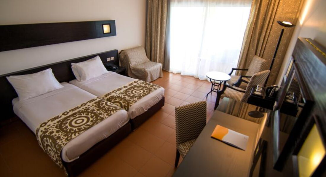 Для тех, кто не любит старую мебель - здесь проблема. Все двери скрипят. В ванной ручка отваливалась. Балконная дверь открывалась только двумя руками, очень плотная, ребенок (пенсионер) не откроет. Мебель старая, но приемлемо выглядит, холодильник норм, забыли дать нам ключ от сейфа (он тут странный, не на цифрах, а на ключе, обратите внимание при получении конверта на размещении, нам забыли дать, но при выезде спросили, где он). Телевизор работал нормально, пару наших каналов типа России24 и ТНТ были. В душе норм, гигиенический набор был и пополнялся по мере потребления, уборка за доллар прилично, без доллара плохо. Каждый день на наш отель предусмотрена выдача воды и 4х банок газировки бесплатно, что выручало, когда в соседнем аквамарине воду только по приезду выдавали, а дальше крутись как хочешь…