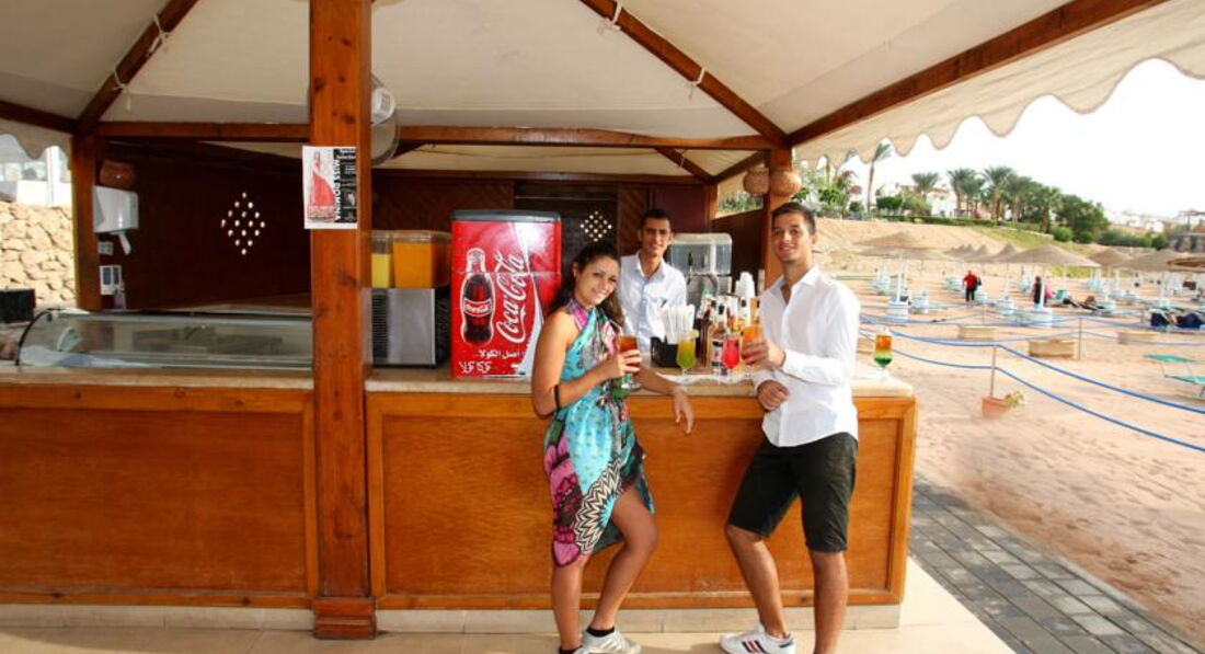 После 6 часов закрываются все бары, кроме одного в центре. Наливают только там, поэтому вечером там не продохнуть. Это минус, так как неудобно ехать из-за бокала вина через весь отель на маршрутке, на которую не факт что сядешь из-за огромного количества людей, направляющихся туда. Кстати вино у них ужасная некачественная сивуха)). Пиво более-менее по египестким меркам. Коктейли делают невсегда аккуратно (2/3 рома например и 1/3 колы), пить такое невозможно, или мохито с непонятным зеленым сиропом, который по вкусу как ополаскиватель для рта. Поэтому наше употребление алкоголя заканчивалось на ужине, хотя иногда хотелось посидеть в компании вечерком в баре).