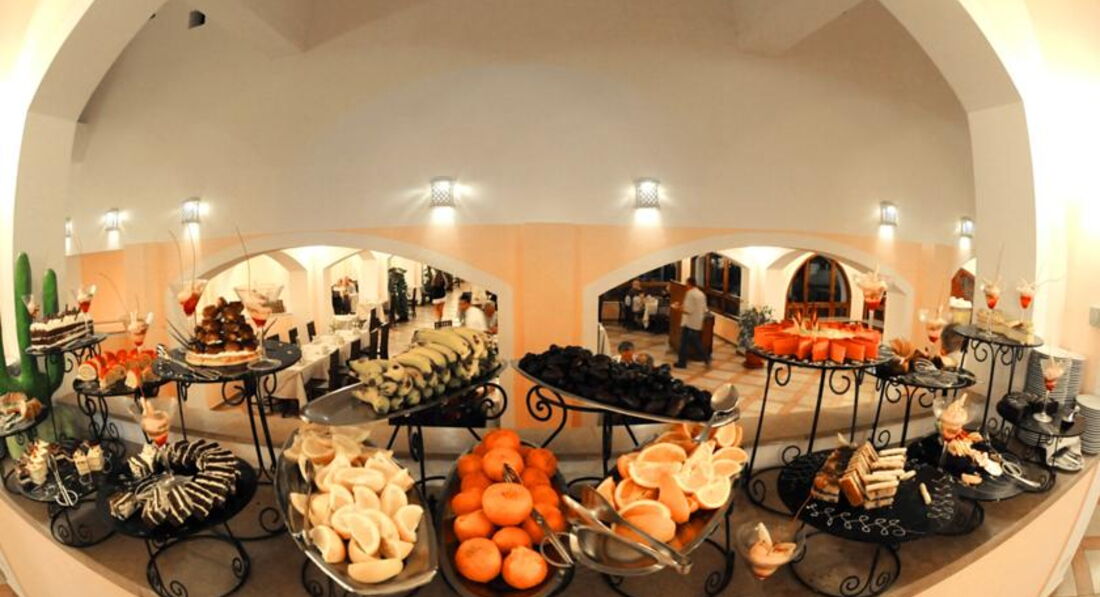 Включає: сніданок (07:00-10:30), обід (13:00-15:00), вечеря (19:00-22:30) - шведський стіл; закуски протягом дня у барах готелю, алкогольні та безалкогольні напої місцевого виробництва. 30% знижка на ресторани мережі Domina Resorts. Морозиво (15:00-17:00) – безкоштовно. Свіжі соки, імпортні алкогольні напої - платно.