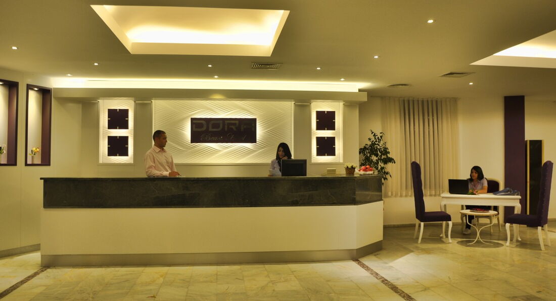 В Доре отдыхали в начале июня 2015г. Приехали в 14.00, заселили сразу без проблем, накормили тоже, хотя обед уже подходил к своему завершению. На рецепшен все улыбаются, хотя по русски практически не говорят. Номер конечно на отель 4* не тянет, но мы же не для того приехали, чтобы в нём проводить всё своё время. Если не обращать внимание на то, что где-то в углах пыльный пол, то всё хорошо. Питание разнообразное, блюда каждый день новые были и вкусные. Пляж очень чистый, лежаков хватает всем, официанты постоянно подходят и приносят напитки (даже до бара ходить не надо самим). Весь обслуживающий персонал очень приветливый и вежливый. Территория очень ухоженая и зелёная, вечерами очень приятно посидеть на мягких пуфах и послушать хорошую музыку.Не согласна со многими отзывами про этот отель, просто проще надо относиться к некоторым вещам и отдых покажется сказкой. Мы приезжаем в Турцию отдыхать, наслаждаться морем и солнцем, у нас так мало этого счастливого времени и не стоит его тратить, на какие-то претензии к персоналу и на то, что у вас из душа идёт не очень горячая вода...... Я всегда была противнецей того, чтобы ездить в один и тот же отель несколько раз, но в Дору Бич с удовольствием приехала бы снова!!!!!