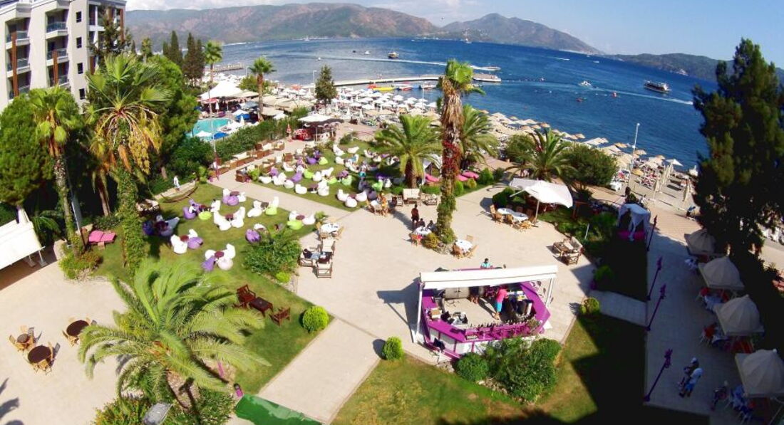 Отдыхали в данном отеле с подругой. Все очень понравилось: море в двух минутах ходьбы от отеля, отличная, достаточно большая и красивая территория у отеля, питание нас устраивало, персонал очень улыбчивый и доброжелательный, номер был чистый и уютный. Море очень чистое, но прохладное. Мармарис-замечательный, красивый город. Единственное, огорчали некоторые люди, которые были постоянно всем недовольны. Мы здорово отдохнули, остались только положительные эмоции! Я считаю, с каким настроем приезжаете, такой отдых и получите.