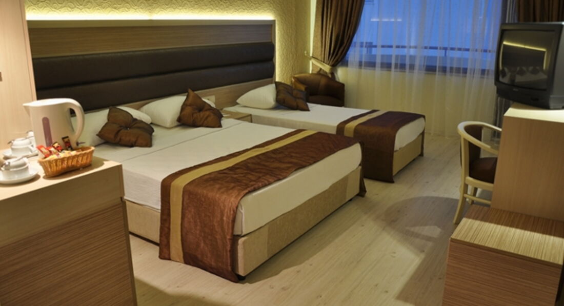 Отдыхала в турции не первый раз. Раньше была и в тройках и в четверках. Но такого не видела нигде. В отеле полная антисанитария. В номерах грязно, на этажах грязно. В столовой, рестараном это никак не назвать, грязная пасуда, грязные вилки, не стесняясь наливают в откровенно грязные стаканы. Заказывая на баре вино, дают бакал с отпечатком красной помады и спокойно наливают, удивляются, когда говоришь, что так не пойдет. Алкоголь наливают под барной стойкой, разбовляя водой. Если поедите туда, требуйте, чтоб наливали прям при вас. В номерах очень холодно, балконная дверь закрывается не плотно, стеклопакеты старые, все в щелях, сильно дует, даже занавеска развивается. Пододеяльников нет. Предлагается укрыться вафельным полотенцем, а сверху одеялом, сомнительной чистоты. Первые два дня были в шоке. Пытались донести до персоонала, который говорит только на турецком, что так нельзя, мы приехали отдыхать, а они нас совсем не ждали - не готовы. Потом поняли, что бесполезно, им просто плевать. Вокруг потрясающий вид - море, горы... дух захватывает...)) это единственный плюс. Трансфер из отеля у нас был в 18.30, в 12.00 нас выселили из номеров и срезали браслеты, чтоб мы не выпили и не съели лишнего. Осталось очень неприятное впечатление.