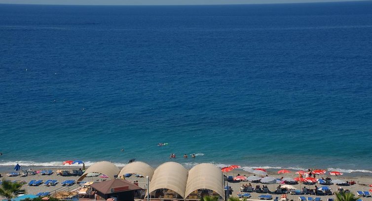 ПЛЯЖ находится через дорогу по подземному переходу. Идти минуту. Сам пляж не очень хороший. Он вроде не грязный, но там очень много каменных глыб естественного происхождения, и если купаться там, где находятся лежаки, есть вероятность упасть на камни при входе в море, т.к ко всему прочему море очень неспокойное, и постоянные волны. Поэтому во избежании неприятных ситуаций и подпорченного отдыха, лучше ходить подальше метров сто налево, где нет лежаков, но по крайней мере нормальный вход в море. Если море, как таковое, вас не интересует, то можно лежать у бассейна. Но занимать лежаки лучше часов с семи утра, а то можно остаться без места. Бассейн не большой, но с большим количеством детей всех мастей ( начиная от немцев и заканчивая турками и даже китайцами) Имеется одна водная горка.