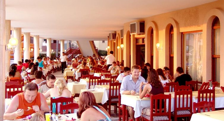 ПИТАНИЕ у нас была система НВ (завтр и ужины) это вполне нам хватало, т.к днем есть не хотелось, а если и ели, то только фрукты. Завтрак как во всех трех звездах: яйца, помидоры, огурцы, арбузы, оливки, сыр, колбаса, хлопья, булочки (пустые), разные джемы к ним, и в зависимости ото дня или сосиски, или блинчики, или яичница, еще чего-нибудь. Соответственно чай, кофе, растворимые соки. Ужин был тоже нормальный, мясные блюда, куча салатом разных, овощи, десерт. Из фруктов арбузы, дыни, виноград, и один раз апельсины.