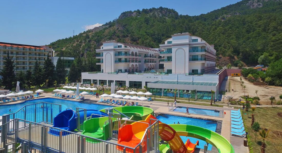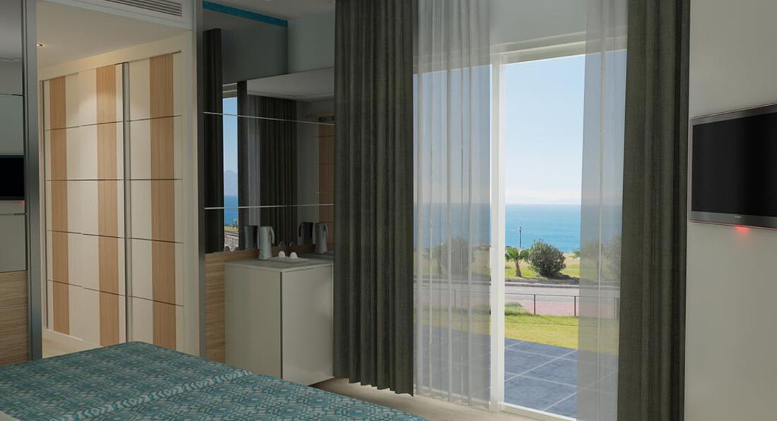Отдыхали с мамой в конце июня, отель выбрала за день до вылета, очень переживала, что не понравится, но была приятно удивлена, что отель новый, еще пахнет строительными материалами, Стильный интерьер,номера новые. Заселили сразу. Номер был на 6 этаже слева вид на горы, справа на море. Очень красиво. Большой бассейн, анимация. Пляж общий на три отеля, места хватает всем. Питание: круглосуточное, разнообразное, все очень вкусно.