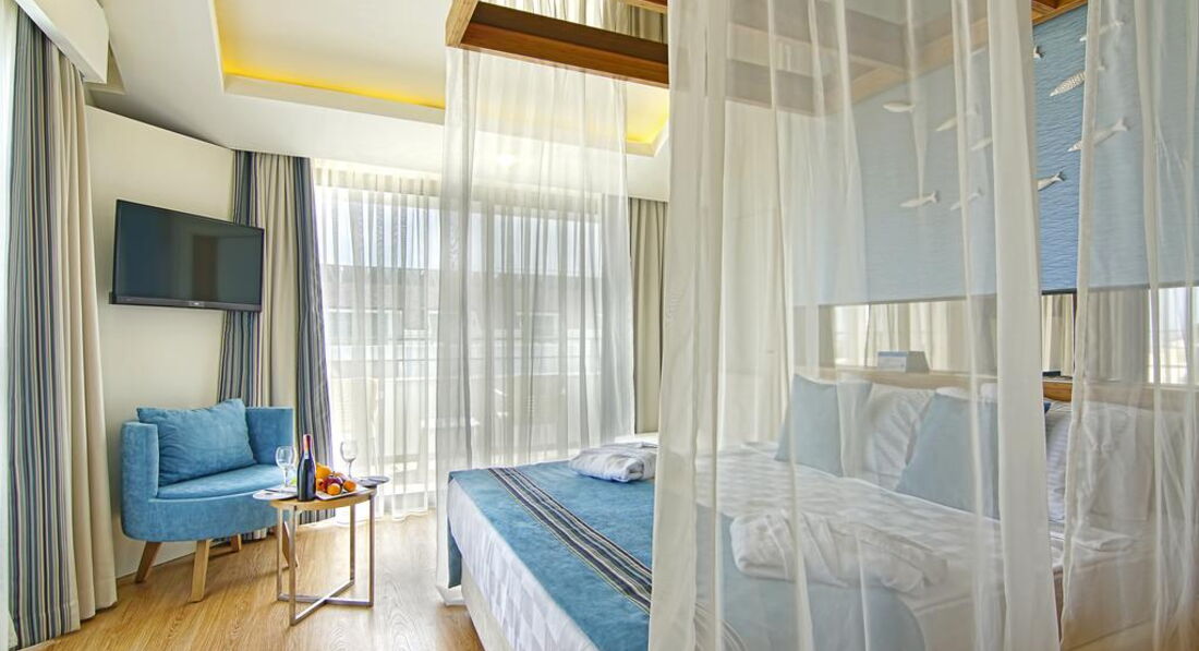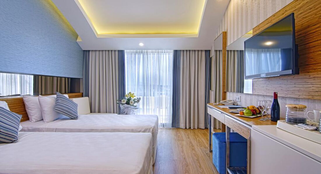 Отдыхали с семьёй и друзьями с 23.06 по 02.07 2017. Отель новый , все мебель, техника. Отличное питание , всегда есть , что выбрать и детям и взрослым . Очень много видов сыра, колбасы и выпечки. В барах есть выбор алкоголя , любой в принципе коктейль , шампанское , мартини , белис, виски , джин , пиво. Мороженное очень вкусное . Номера здесь уютные, но небольшие . Для семьи из 2 взрослых и 2 маленьких детей тесно. И отель очень очень экономит на кондиционерах!!!( ни на ресепшене, ни в коридорах, ни в столовой. Просто не работает кондиционер. Хороший бассейн, до моря идти очень быстро 5 минут максимум. Анимация нам очень понравилась в особенности конечно ведущий Жан и Тоня- очень зажигательные ребята. Очень классный танец отеля ! Есть 3 горки в бассейне, но работают маловато. Бесплатные лежаки и полотенца на пляже , и сейф в номере бесплатный . В номере мини бар бесплатный пополняется 1 раз в два дня( бутылка воды маленькая минералка, сок с трубочкой , либо кола либо фанта . Единственное что испортило впечатление под конец отдыха , сломался в последний день кондиционер- пришёл мастер и сказал не сможет подчинить , и предложили другой номер , когда пришли в другой там работает кондиционер и стоит температура +29. Невозможно спать , вызвала мастера , пришёл и говорит работает кондиционер и ушёл . Мы опять с вещами пошли в свой номер так как больше номеров не было и эта последняя ночь показалась кошмаром ... спать невозможно в комнате жара , на балконе тоже . Пол ночи пробегали по комнатам , за место того чтоб собирать нормально чемодан и отоспаться для дороги !!! Работает 1 раз Аля карт ресторан , менеджер Светлана все рассказала и отвечала на все наши вопросы. Бесплатный хамам и тренажёрный зал и ещё небольшой недостаток плохой вай фай и постоянно выключался свет , бывало и на 30 секунд то на минут 10 то ночью , то вечером , то днём , хотя в лифту могут ехать одни дети ,,,