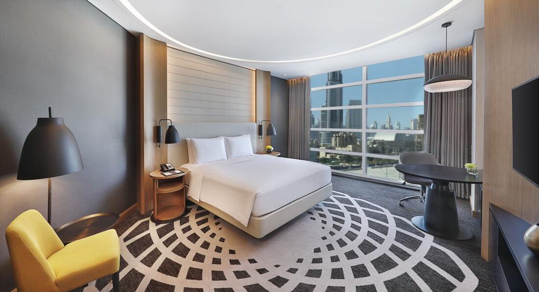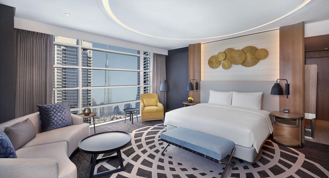 Типи номерів: • 69 King Guest Room/48 Twin Guest Room – площа 36 – 40 кв.м., розташовані на 2-12 поверхах, максимальне розміщення 4, одна кімната, ванна кімната, балкона немає. • 32 King Guest Room With Burj Khalifa View/ 10 Twin Guest Room With Burj Khalifa View - площа 36 - 40 кв.м., розташовані на 2-12 поверхах, максимальне розміщення 4, одна кімната, ванна кімната, балкона немає. • 12 King Superior Room/20 Twin Superior Room - площа 44 кв.м., розташовуються на 3-12 поверхах, максимальне розміщення 4, одна кімната, ванна кімната, балкона немає. • 20 King Deluxe Room – площа 60 кв.м., розташовуються на 3-12 поверхах, максимальне розміщення 4, одна кімната, ванна кімната, балкона немає. • 11 King Deluxe Room With Burj Khalifa View - площа 49 кв.м., розташовані на 2-12 поверхах, максимальне розміщення 4, одна кімната, ванна кімната, балкона немає. • 11 One Bedroom Suite With Burj Khalifa View – площа 97-104 кв.м., розташовуються на 2-12 поверхах, максимальне розміщення 4, дві кімнати, вітальня, спальня, кухня, ванна кімната, балкона немає. • 1 номер для осіб із обмеженими фізичними можливостями.У номері: • ванна кімната • халати та тапочки (безкоштовно, на запит) • фен • індивідуальний кондиціонер • супутникове ТБ (1 російський канал) • телефон • міні-бар (платно) • праска та прасувальна дошка (за запитом, безкоштовно) • набір для приготування чаю та кави (безкоштовно) • Wi-Fi (безкоштовно) • сейф (безкоштовно) • прибирання номера: щоденно • зміна білизни: раз на 3 дні • додатковий сервіс номерів (платно)