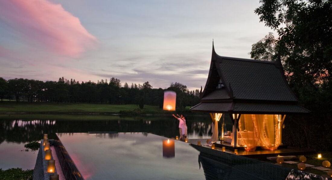 Бутік-готель класу преміум – один із найунікальніших курортів Південно-Східної Азії. Розташований у тропічному саду на пляжі Bang Tao. Вілли з двома басейнами Banyan Tree створені спеціально для гостей, які шукають усамітнення в атмосфері вишуканості та краси. Побудований у 1994 році, постійно оновлюється.