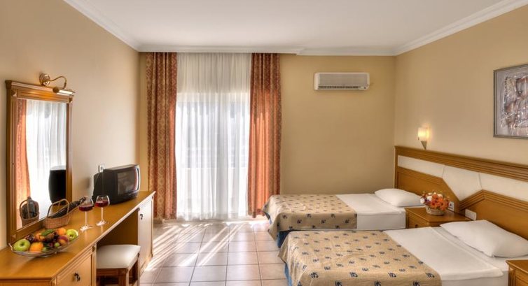 Взяли за сутки до отлета отказную путевку на 8 дней за 34тыс.руб.,поэтому особых иллюзий не питали,а когда узнали,что тур стоил у других на 7 дней-68 тыс.руб.-вообще перекрестились.Отель мы назвали -пансионат "Ласточка",т.к. тишина мертвая,вечером даже музыка не играла.В соседних отелях дискотеки и живая музыка.Мы в наглую к ним приходили на дискотеки.Занимать места нельзя,а танцевать можно.С детками в этот отель ехать не советую-анимации нет,пляж галечный,бассейн расположен между корпусами и вода холодная.Номерной фонд старый.В шкафу висит несколько вешалок(которые не снимаются) и нет даже полок для белья.Пришлось все развешивать на стулья.