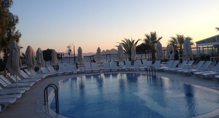 Доброго времени суток друзья! Наверное если сказать, что и "тройках" можно замечательно отдохнуть , значит ничего не сказать.Опущу все моменты перелета, трансфера и расселения - здесь все как обычно : четко, быстро, достойно! Номер, современный, новый, все работает, но очень маленький, хотя это не минус. ТВ - пять российских каналов на прекрасной большой плазме.Практически из всех номеров вид на море и бассейн , и это стандарты! Что в люксах не знаю и спросить не у кого было , т.к наших было примерно 10 %, а все общение на территории было на английском. Питание на удивление вкусное и не смотря на коротенькую шведку все всем хватало и в ассортименте все было достойно . Бар очень качественный. И до 24.00 наливали ром, текилу, бренди, виски, водку, и конечно пиво Эфес. Без очередей и ограничений. Пляж узковат, но есть пирс и места всем предостаточно, кому не нравилось , ходили в соседние отели, лично пробовал и никто не гонял. А море, Эгейское море, это особая тема. Игра светотени в лазурных тонах просто не оставляла никого равнодушным, плюс вода 29 * придавала особое ощущение спокойствия и красоты. Анимация была в соседней 4*, и это было очень здорово в плане тишины по вечерам. А проводя вечера в созерцании потрясающего заката в море с бокалом вина , создавалась атмосфера уюта и отдыха. На набережной всегда можно было сесть за свободный столик и наслаждаться морем. Существует прекрасный променад вдоль отелей до самого Тургунтрейса, Все демократично , можно даже в соседние отели заглянуть и поиграть в волейбол или поучаствовать в шоу. И теперь самое главное: отношение персонала к туристам. Здесь все на высшем уровне. Никаких претензий и вопросов. Насколько точно каждый знает и выполняет свою работу . Респект и уважение персоналу и рукопожатие хозяину за профессионализм. На побережье Эгейского море мы впервые, и вот что интересно, загар ложиться очень ровно и красиво (без кремов и практически без защиты) и самое удивительное так долго держится! Это одна из прелестей этого курорта. Подводя черту, хочу сказать , побольше бы таких "троек", в которых чувствуешь себя комфортно и уютно! Спасибо!
