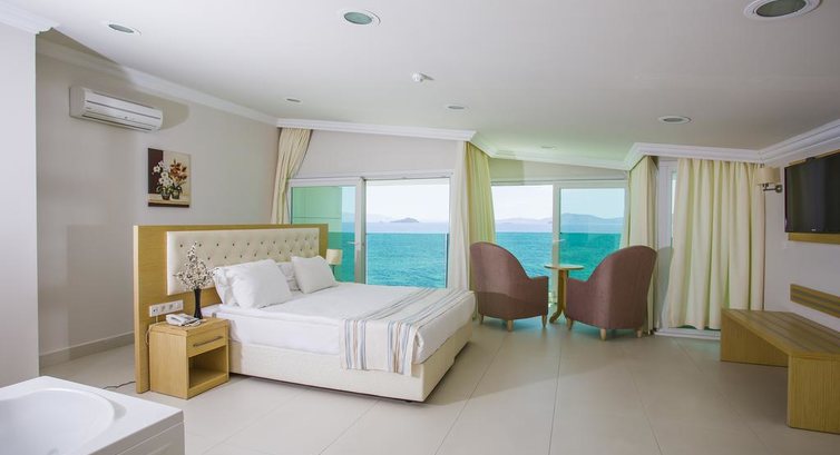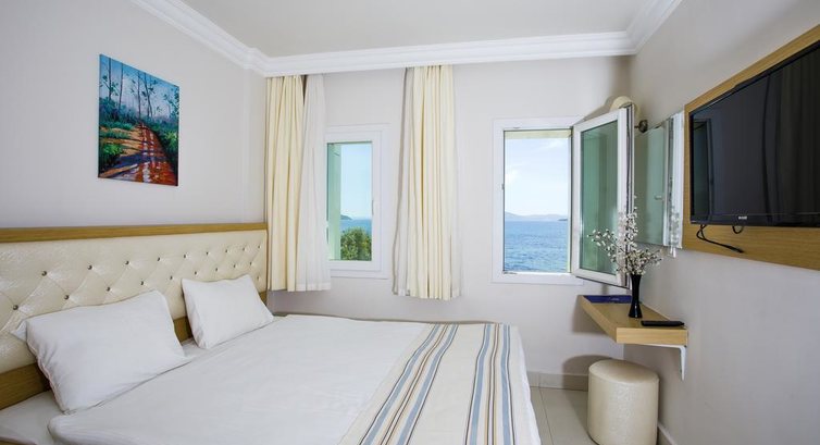 Розташування: за 50 км від аеропорту і за 18 км від центру Бодрума, на березі моря.