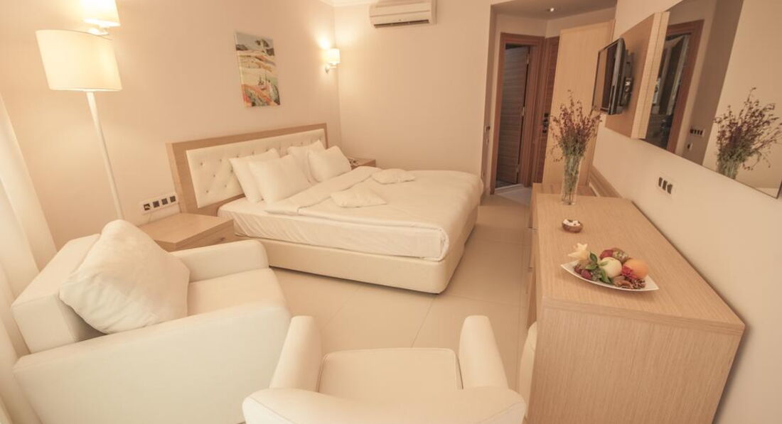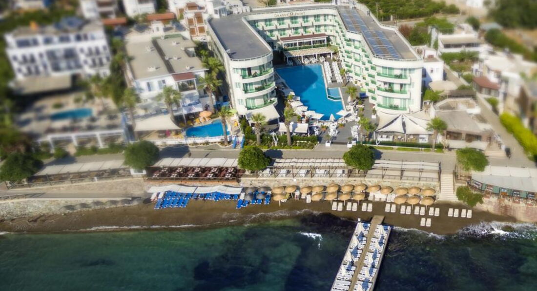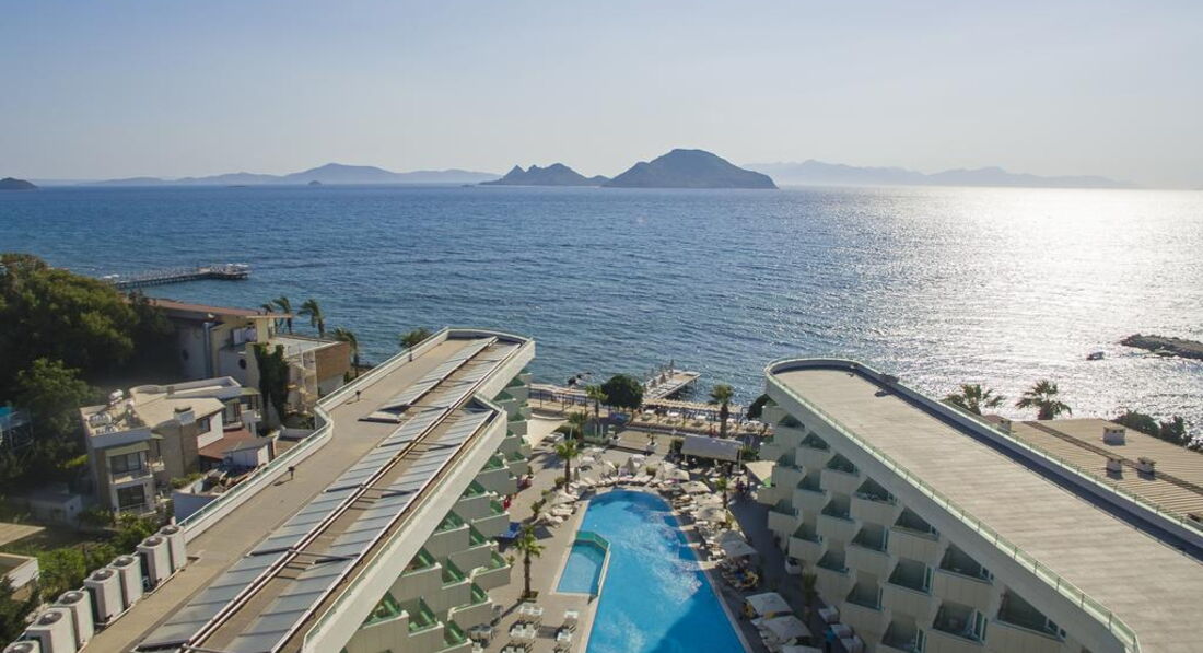 Розташування: за 50 км від аеропорту і за 18 км від центру Бодрума, на березі моря.
