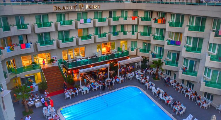 Территории у отеля практически нет, но это совершенно не мешало, так как есть чудесная пешеходная набережная до самого Тургутрейса, гуляли по ней, особенно вечером, с большим удовольствием. Бассейн достаточно большой, шезлонгов всегда хватало. Можно подняться на крышу и полюбоваться закатом.