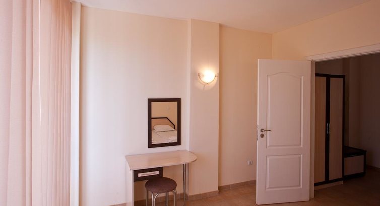 Типи номерів: Studio (30 кв.м.) – спальня, кухня, балкон One bedroom apartment (70 кв.м., макс. 4 дорослих) - спальня, вітальня, кухня, балкон Two bedroom apartment (100 кв.м.) - 2 спальні, вітальня, кухня, балконУ номері: кондиціонер ТБ Wi-Fi (3 BGN/день) міні холодильник підлогове покриття: керамічна плитка