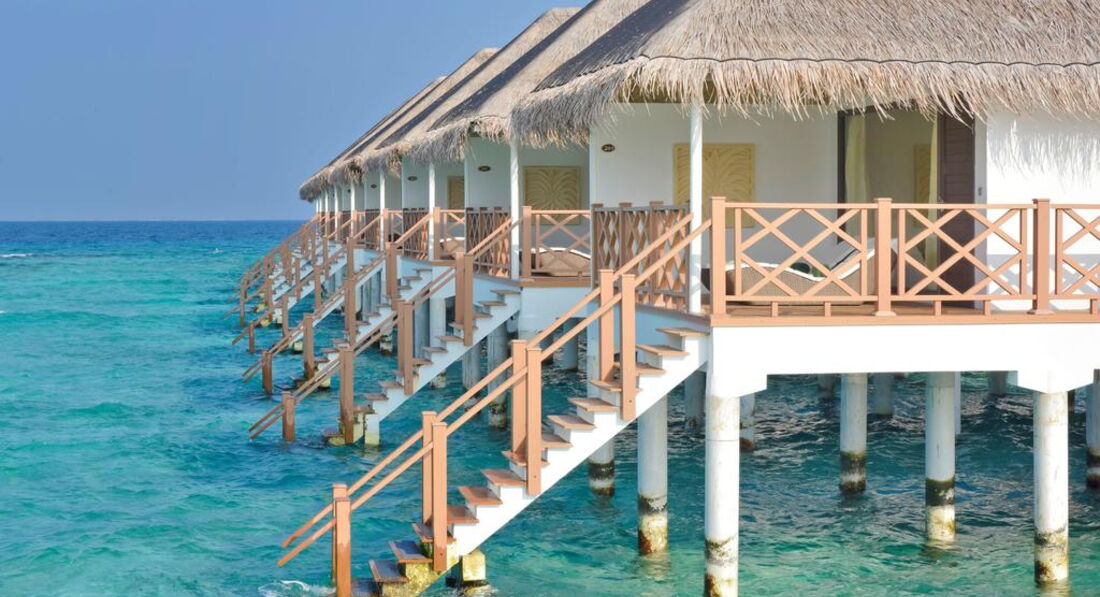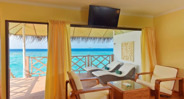 • WATER BUNGALOW площа: 78 кв. Макс.розміщення 3 чол. Бунгало обладнані дерев'яною терасою з шезлонгами та прямим доступом до лагуни. З бунгало відкривається чудовий краєвид на океан.