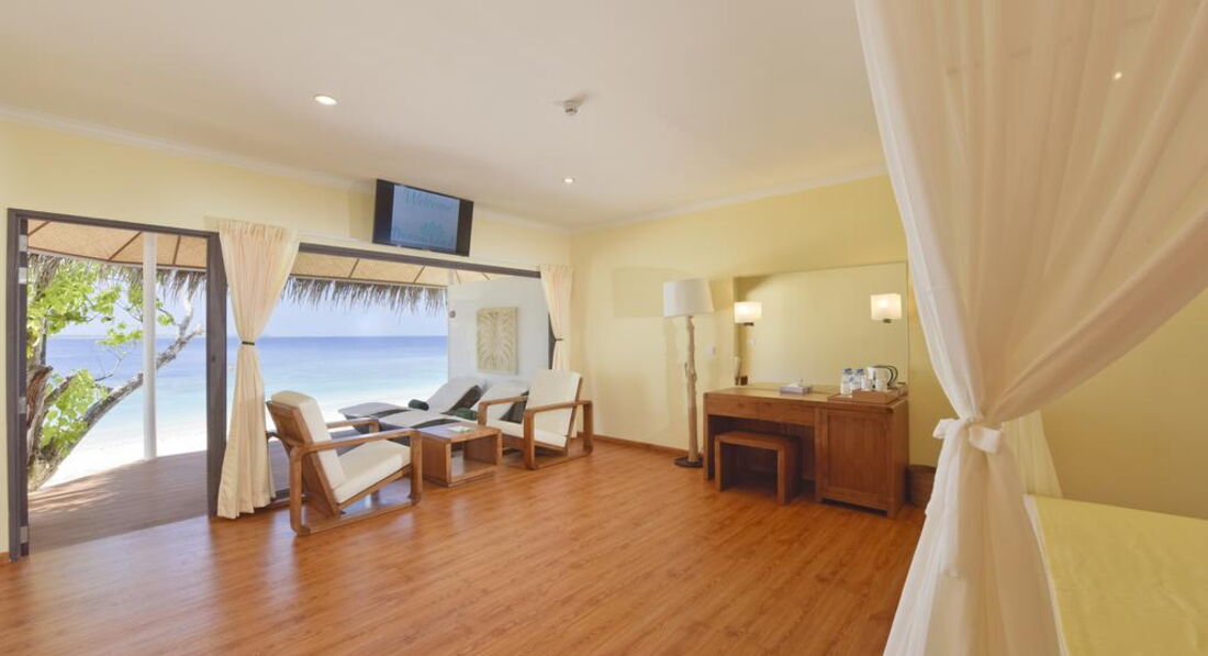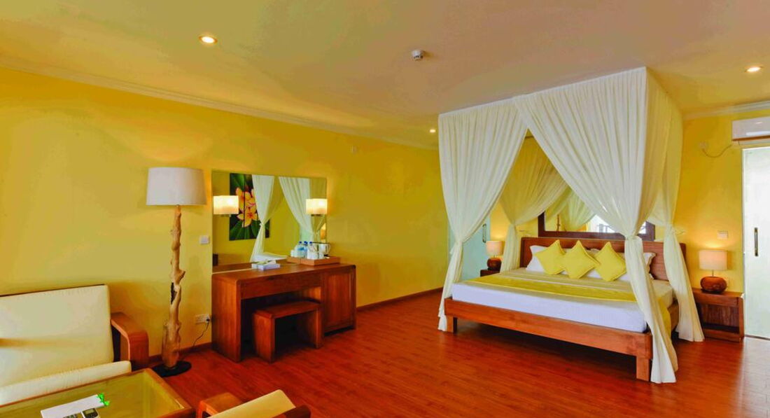 Відмінною особливістю цього затишного курорту є прісноводне озеро (1600 м2) з вбудованим біотопним басейном, оточеного мангровими деревами та пальмами. Острів може похвалитися не тільки білопіщаним пляжем, а й гарним кораловим рифом, що особливо оцінять шанувальники снорклінгу. Готель відкритий у лютому 2018 року. Рекомендуємо для спокійного сімейного відпочинку.