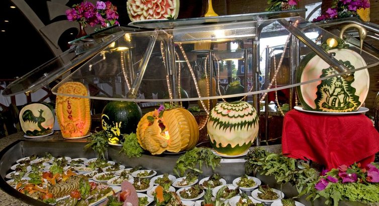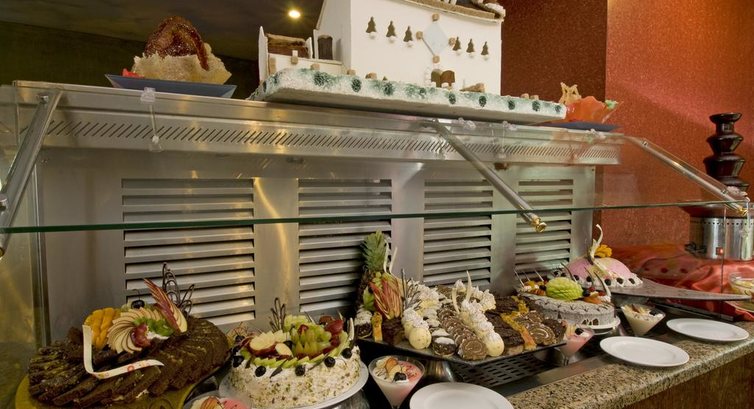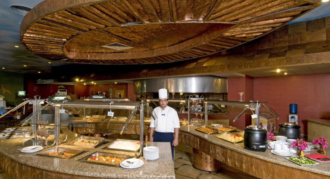 Tropicana Restaurant, розрахований на 400 осіб: Сніданок з 07:00-10:30, Обід з 12:30-14:30; Вечеря з 19:00-22:00. Шведський стіл, міжнародна кухня. За системою "ультра все включено": Pizzeria - закуски з 12:30-14:30, чаювання з 12:00-17:30 (млинці), з 16:30-18:00 бутерброди та солодощі, з 23:00- 00:30 пізня вечеря. За системою "все включено": Pizzeria - чаювання з 11:00-12:00, легкі закуски з 12:30-14:30, сендвічі та солодощі з 16:00-17:30, млинці з 12:00-17: 30; На терасі ресторану Tropicana є пізні закуски з 23:00-00:30. Дитячий куточок в основному ресторані під час сніданку, обід та вечеря.