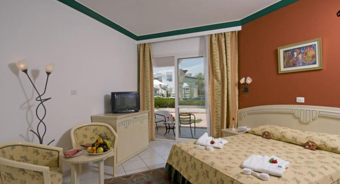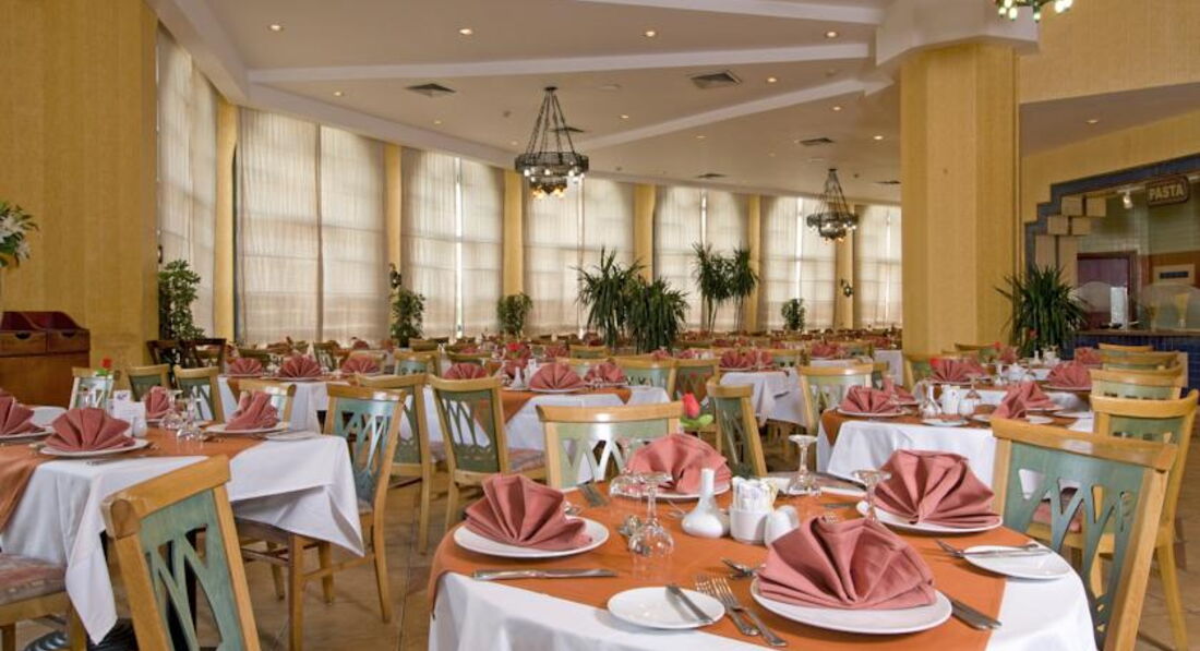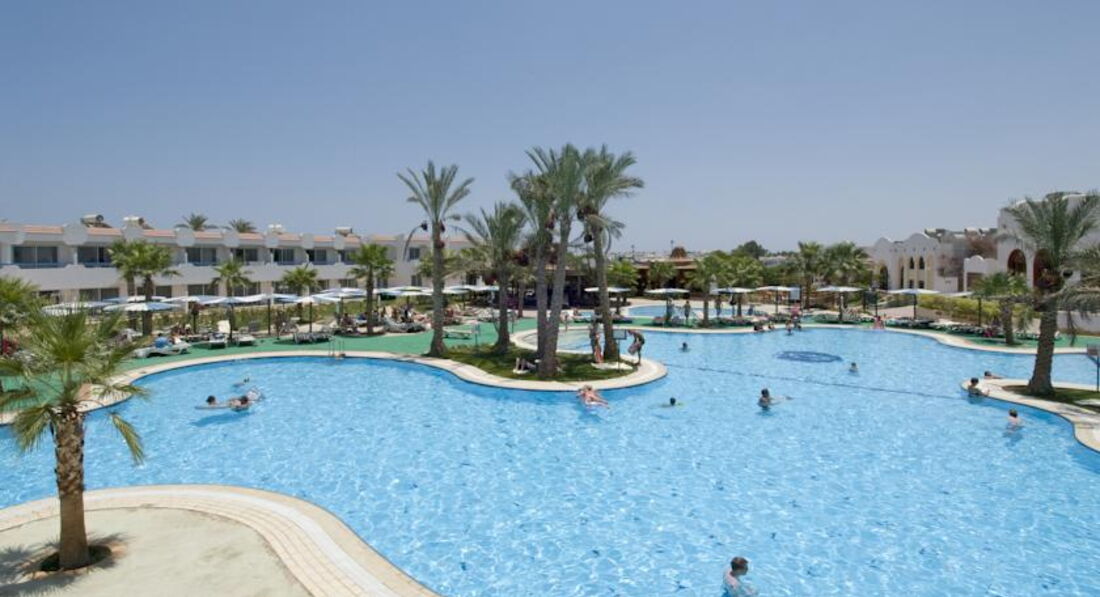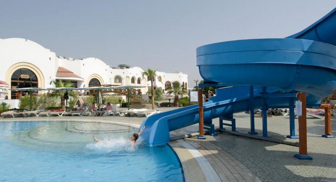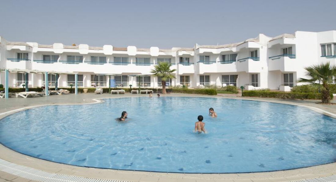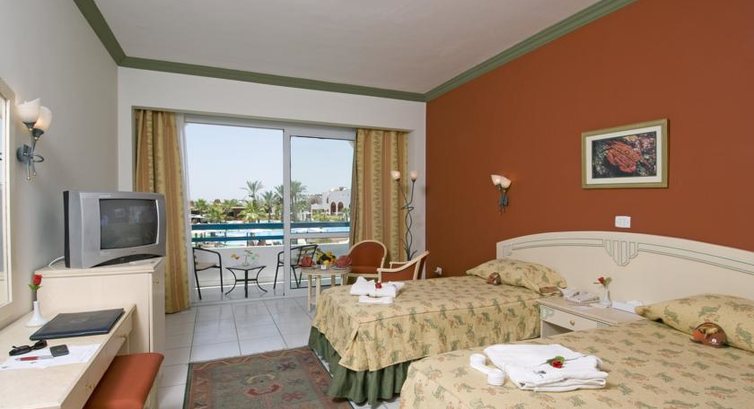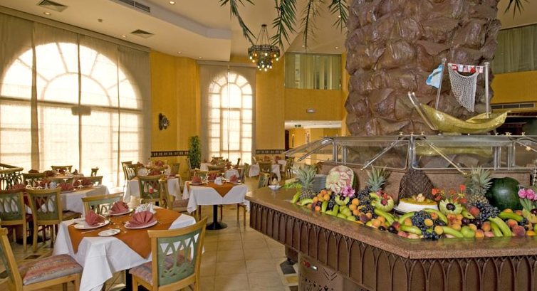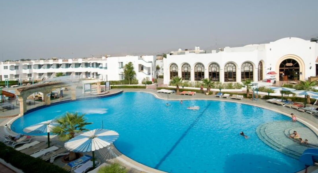 Начну с того что я непритязателен,но... Отдыхали в этом отеле в начале авуста компанией из четырех взрослых и одного ребенка. По приезду в отель увидели что на рецепшине вообще никто не говорит по русски,да и английский понимают с трудом. В выделенные нам номера было страшно зайти из-за грязи. Благо что еще работали уборщики,которые под чутким руководством с горем ппополам убрали номер. Бутылки с водой,как это было обещано,небыло. В номере у друзей не работал холодильник и на троих было одно полотенце. Еда в ресторане разнообразием не отличается. Курица,тушеная говядина и рыба в кляре(за 10 дней только один раз дали просто жареную). Сливочного масла нет, растительного масла нет,овощи по качеству как у нас продаваемые зимой,салаты заправить нечем,рис безвкусный,если не сказать неприятный. И,самое "прекрасное" что за всем мясным надо отстоять очередь,где тебе обслуживающий персонал положит выбраное на тарелку. Не сам.... Причем видна разница в отношении обслуживающего персонала ресторана к отдыхающим арабам и славянам. По тому сколько и чего они кладут. Особенно по курице-гриль. Так как большинство отдыхающих арабы чистотой территория отеля не отличается. Как пример-кто-то из них поменял ребенку памперс и использованный положил на столик зонтика. За срок более чем сутки он просто поменял местоположение-его сбросили на землю. И так во всем. Из всего хорошее впечатление оставило море с рифом и рестораны а-ля карт. Отдельного "доброго слова" заслуживает отельный гид по имени Магид. Он не помогал туристам вообще,информацию давал не верную,найти его в отеле было практически невозможно. В частности нам напоминание об экскурсии он прислал когда мы уже вернулись с нее,а время выезда на другую мы узнали за час до отправления. Так что данный отель не рекомендую.