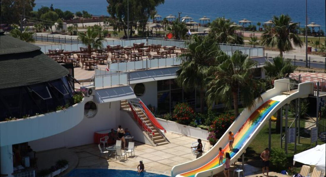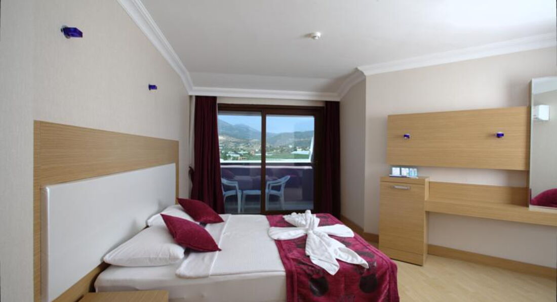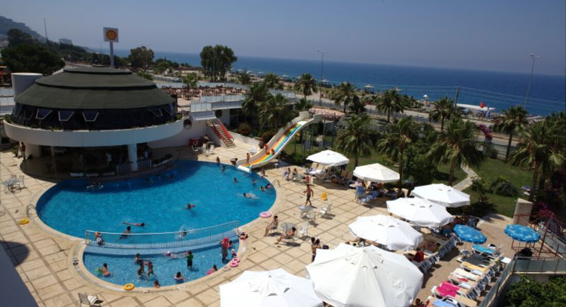 Отдыхали с дочерью в этом отеле с 24.06.15 по 5.07.2015 . Приехали рано утром ,заполнили анкеты и пошли на завтрак (7.00). Потом на пляж ( т.к заселение в 14.00) ,подошли на рессепшн в 11 ,нам дали карточку от номера и проводили,что нас порадовало. Номер у нас был на 2 этаже с видом во двор (банановые плантации,вдали -горы). Номер небольшой,но уютный. с балконом. Есть бассейн у отеля,глубина 180см . Пляж через подземный переход (чистый всегда). Лежаков хватало всегда,есть душ ,туалет ,бар на пляже. Единственный минус-это каменистый вход в море. Есть и большие камни и поменьше на дне. Почти всегда были большие волны . Есть пирс. Пляж чистый. Питание в отеле отличное!!! Всегда мясо, курица, рыба. Из фруктов - апельсины ,сливы ,дыни ,арбузы ,абрикосы ,иногда черешня,клубника. Места в ресторане были всегда. Вечером можно погулять по набережной, рядом есть парк, по выходным там вечерами отдыхают местные жители, ещё там есть тренажеры. До центра Алании можно доехать на зелёных автобусах, остановка рядом с отелем, за 2.5 лиры(1 доллар). Мы ездили в торговый центр Алания ,там есть хороший отдел одежды LC Waikiki, одежда качественная и красивая . Была вечерняя анимация,вначале детская,потом для взрослых .Днём дартс ,волейбол и конкурсы на бассейне. Вернулись бы туда ещё...если бы не каменистый вход в море. А так-всё отлично,нам понравилось там!