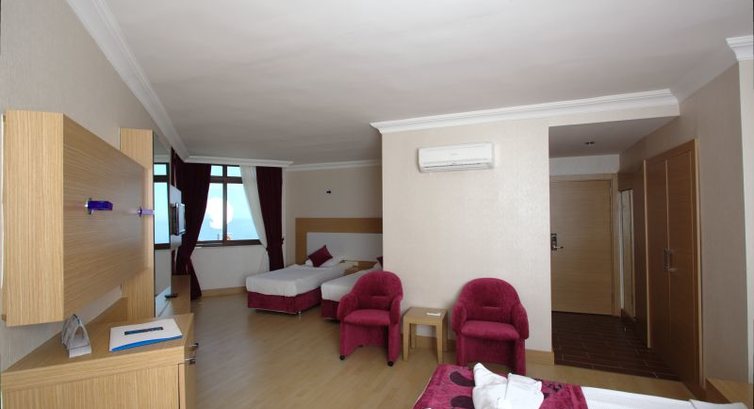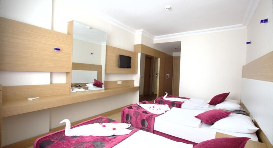 06/07/2015 вернулась из отеля.В целом отель хороший,но не тусовочный (заявлен как семейный),но даже молодой семейной пере без ребенка может быть скучновато.Очень много иностранцев-немцев,англичан,чехов,поляк,латвийцев и самих турок,русских мало.(пенсионеры и семьи с детьми)По отелю-разместили через часа два,(без какой либо доплаты)номер дали с видом на бассейн и море (№1106) на первом этаже.Номер достаточно хороший чистый,единственное что, кондиционер работает плохо,и какой то шум ночью(что то гудит) с открытой лоджией спать не возможно.Убирают в номере каждый день,горничные молодцы крутят каждый день разные фигурки-красиво.По питанию-голодными точно не будете,но разнообразие не велико(есть с чем сравнить).Выбор спиртного тоже не велик-пиво,водка,джин,ракия местного производства.Ну и для детей спрайт,кола,Фанта и т.д и в автоматах типо юпи.Пляж- заход в море с препятствиями ( камни),но песчаный.Море шикарное,чистое видно дно,даже заплыв подальше.На пляже есть бар где можно поесть и попить (работники на пляже молодцы (возможна семейная пара)) всегда очень приветливые, улыбчивые и работают на отлично,успевают все.Бассейн-всегда чистый,но много народу всегда,лежаков свободных -пожалуйста,есть ода не большая горка.WI FI- работает плоховато,если много народу пользуются сразу -тормозит.Да и работает он исключительно если направить на точку где находится роутер(комната за ресепшн).Сейф платный(три доллара сутки),что для пятерки не приемлемо.Да и после 24 часов все платно и спиртное и даже кофе из автомата,тоже повторюсь,для пяти звезд минус.Мороженое и натуральный сок платно всегда.В целом все очень даже ничего,но не для молодых.Делала Спа в отеле-шикарно(25 долларов),парень отмассажировал так,что кости все трещали,да и девочка пенный массаж сделала отлично( в общем не пожалела).Отель конечно на пятерку не натягивает максимум четыре звезды.Один раз съездить можно,но не больше.
