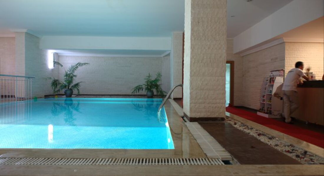 Бассейн большой глубина разная от 160 и до 190 см вроде и есть детский "лягушатник" 48см. В бассейне можно плавать до 19- потом заливают хлорку. У бассейна горка, включают ее два раза в день. Отель позиционируется как Ресорт энд Спа и в нем действительно есть крытый бассейн, парная, хамам и тренажерный зал, но за дополнительную цену!
